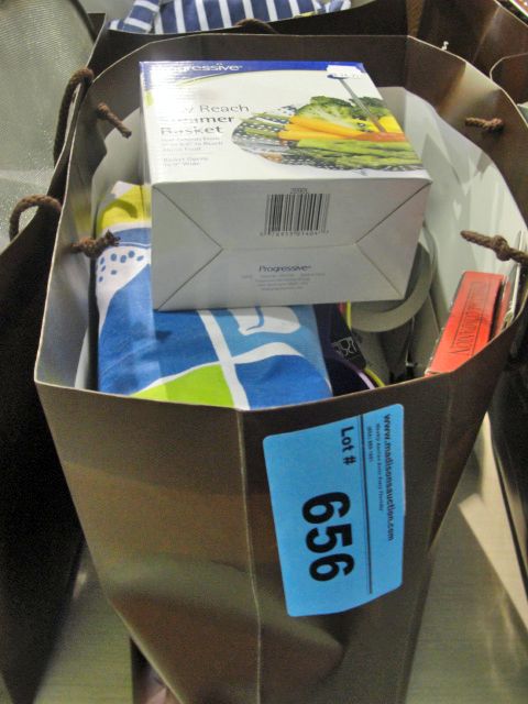 Brown store bag filled with new assorted kitchen