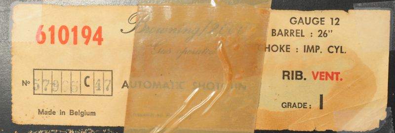 Browning 2000 Semi-Automatic 12 Ga. Serial #57965 Unfired in the original plastic, new in the box. From the estate of the late Col. Billy Gregg from San Antonio, Texas.