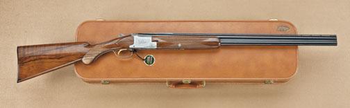 Browning 20ga superposed shotgun Pigeon grade, Belgian made, round knob, long tang, serial #26181V2. In original Browning luggage case. The gun is fine to excellent condition showing very little handling and use, at least 98-99% plus. The gun shows 28” barrels, ventilated rib, single trigger, choked Modified and Improved Cylinder. The gun show almost no use, just slight firing, the original lightning superposed tag is attached, the original buttplate is retained. There is just some slight handling and storage marks. The case also near excellent with Browning booklet, paperwork, and Kerrs receipt from 1970’s. Est: $2,000 - $4,000