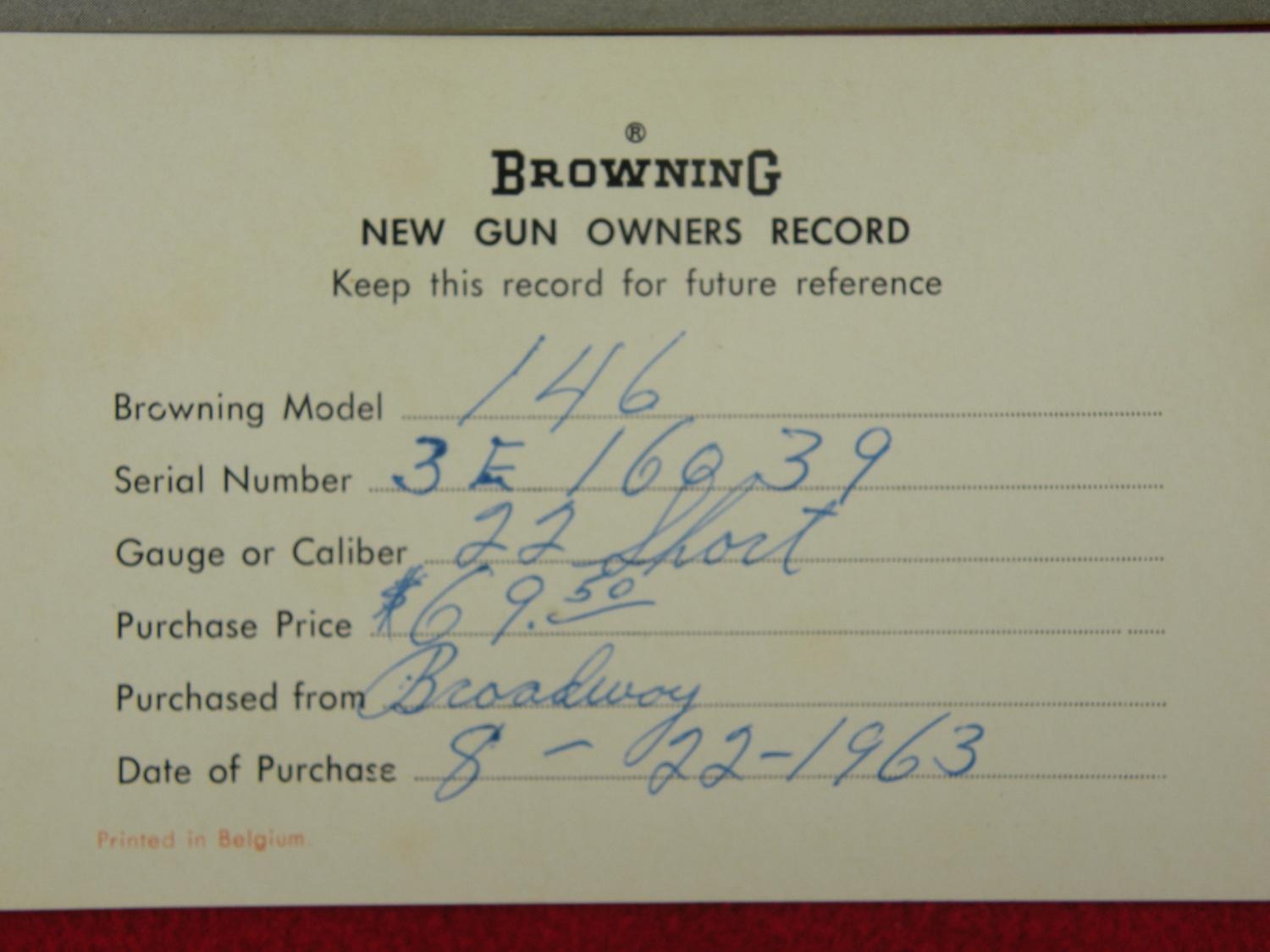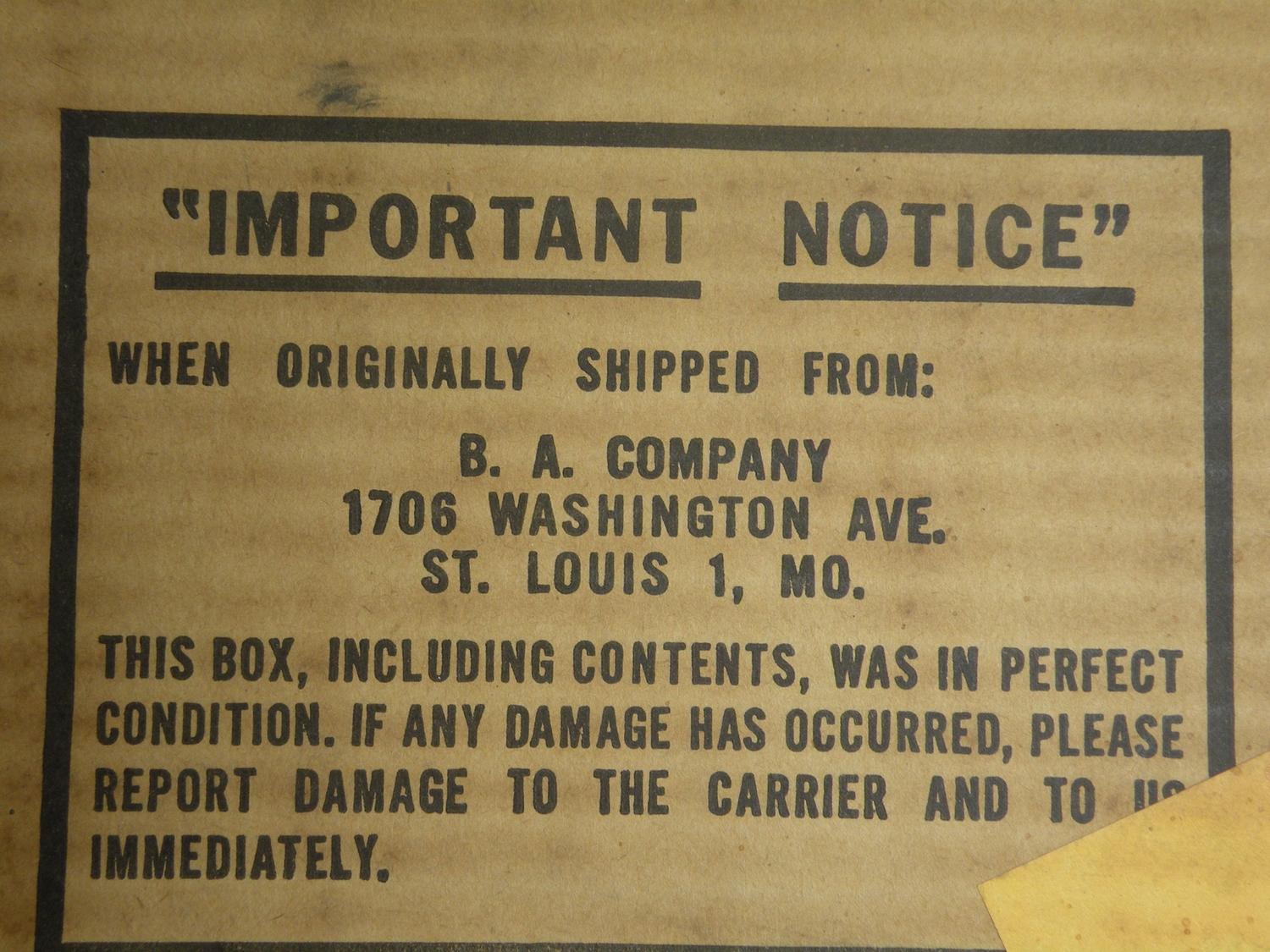 Purchased In 1963 From Broadway Tire Highland IL. Never Fired Never Assembled! LNIB New owners record Card, Manual, Box, Original Shipping Box From B.A. Company St. Louis. Unique Find! SN 3E16039