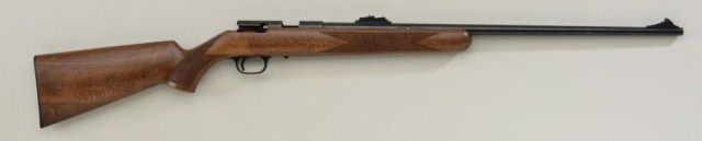 Browning A-Bolt 22 caliber rifle like new in original box with Belgium mfg mark and proofs, serial # 683999X. No evidence of firing since leaving factory and bolt appears to have never of been in the gun, slightstorage only minor tatters to box and shows correct end label and serial number matches. Robert E. Petersen collection. Est.;$400-$800.