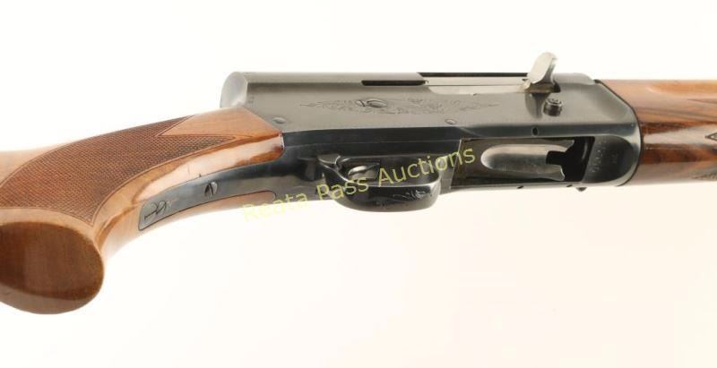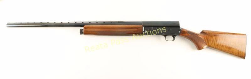Belgium made semi-automatic shotgun chambered for 2 3/4" 12 gauge shells, circa 1967. Features a blued finish, 27.5" vent rib modified choke barrel, bead front sight, 1/2 length tube magazine, push button safety, polished bolt with checkered charging handle, scroll engraved receiver, smooth trigger, checkered walnut forend and pistol grip shoulder stock with factory black plastic buttplate. Shotgun exhibits approximately 98%+ of it's original blued finish with very little wear observed. Action is crisp, bore appears excellent with a small amount of debris and wood stocks are near fine with only minor blemishes. Condition is excellent. ***Modern Firearm***