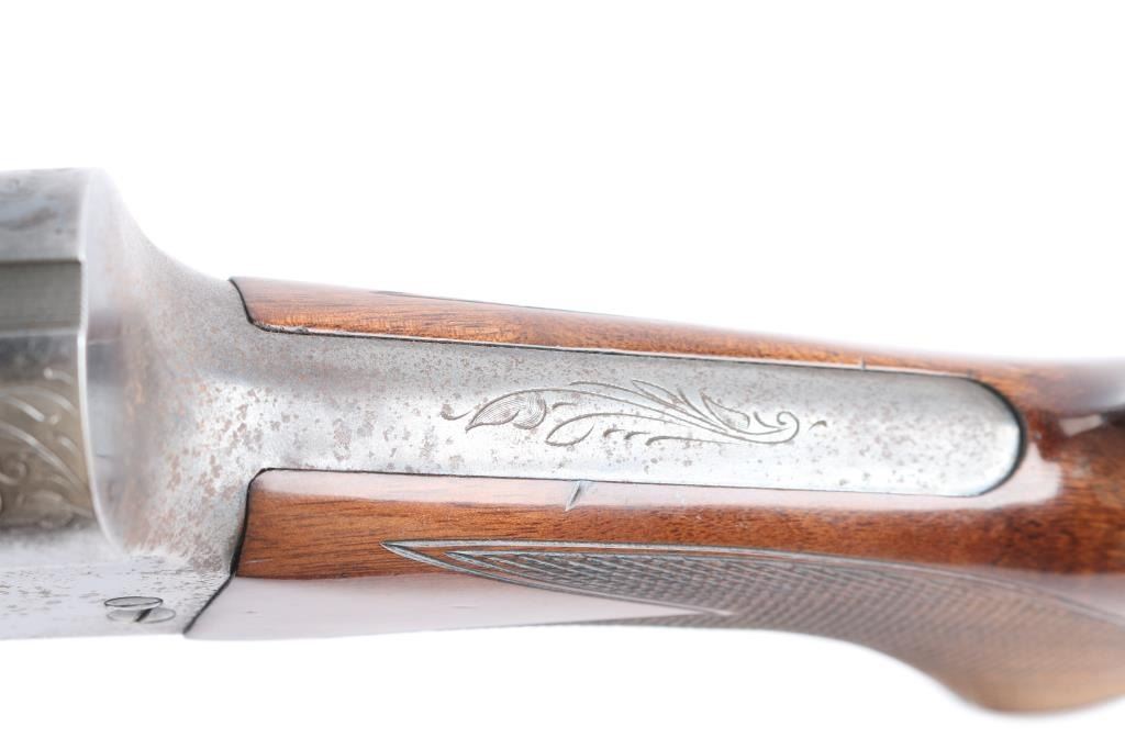 FAIR: Some major parts replaced; minor replacement parts may be required; metal rusted, may be lightly pitted all over, vigorously cleaned or re-blued; rounded edges of metal and wood; principal lettering, numerals and design on metal partly obliterated; wood scratched, bruised, cracked or repaired where broken; in fair working order or can be easily repaired and placed in working order.