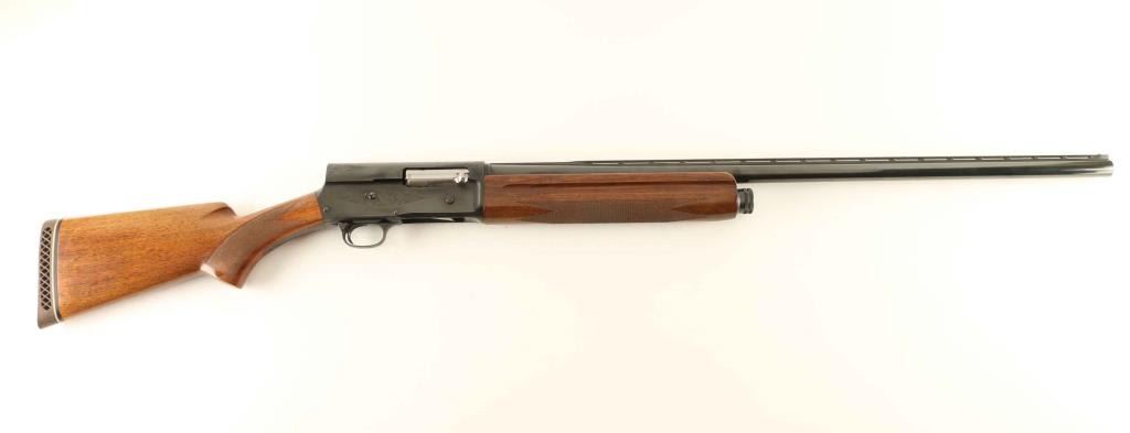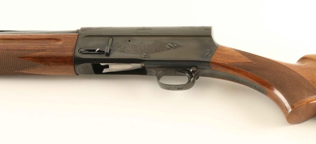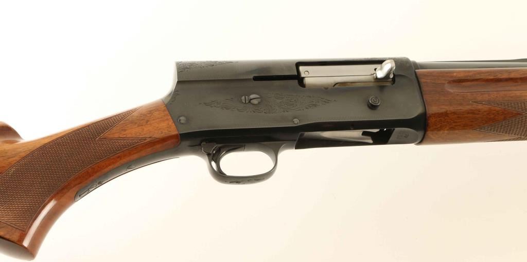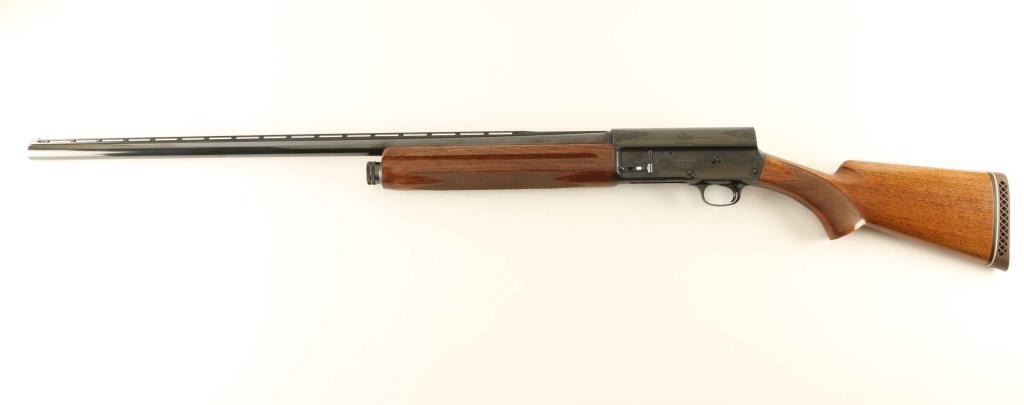 'Grade I' Desirable Belgium made semi-automatic shotgun chambered for 2 3/4" & 3" 12 gauge shells, manufactured circa 1967. Features a bright blued finish, 29.5" full choke barrel with ventilated sighting rib, silver bead front sight, 1/2 length tube magazine, push button safety, polished bolt with knurled charging handle, scroll engraved receiver, smooth trigger, checkered walnut forend and pistol grip shoulder stock with factory recoil pad & 14" LOP. Shotgun exhibits approximately 98% of it's original blued finish showing a few handling marks/scratches and some light emerging surface rust on the upper tang. Action is crisp, the bore is pristine and the wood stocks are fine. Condition is near NRA Excellent. ***C&R Firearm***