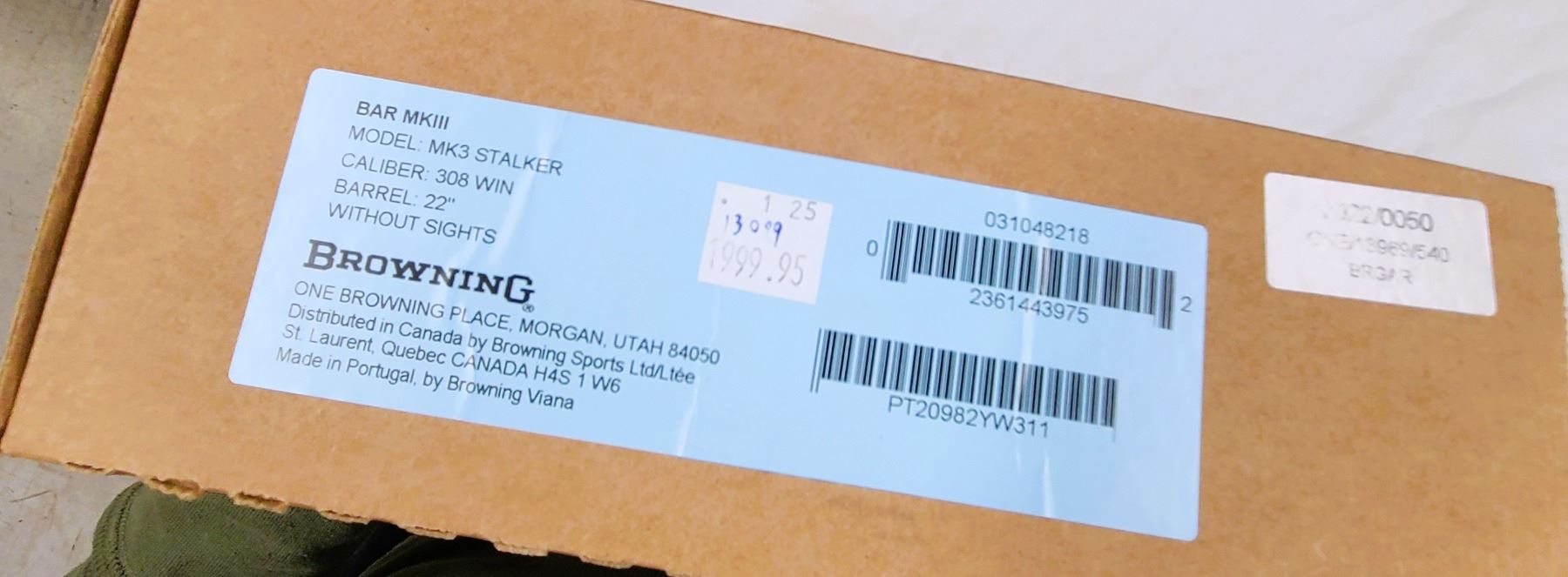 Browning BAR Mark 3 Stalker 308 Win Semi Auto Rifle - NEW in Box