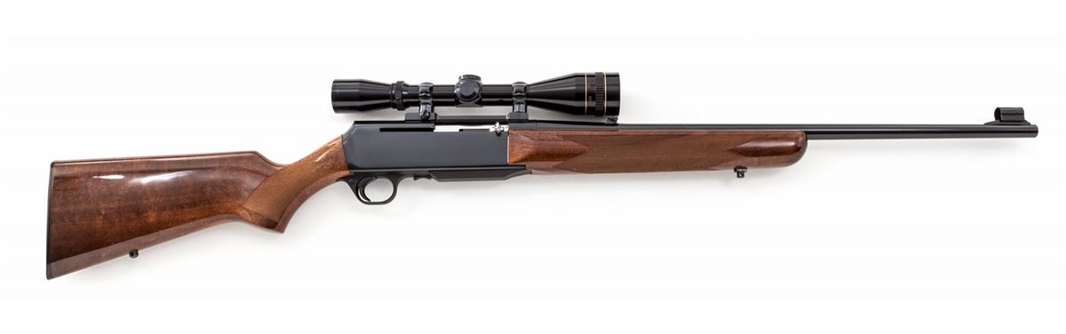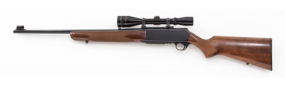 Browning BAR Semi-Automatic Rifle, #137RP14578, .30-06 cal., 22'' barrel, blue finish, factory checkered walnut stock. Topped with a Leupold 3-9 scope on Redfield rings and mounts. Condition is excellent showing only the slightest marks from handling. Good action, bright bore, clear scope optics. Est.: $750-$1,000. (Modern)