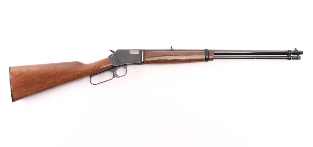 Lever-Action rifle. 15+1 capacity. Manufactured in Japan by Miroku for Browning , Morgan, Utah, Montreal P.Q. 20" barrel with post/bead front, and dovetailed, adjustable 'white triangle' folding rear sights. Full length tube magazine. Machined steel receiver. High polish blue. Gloss finished, checkered walnut stock, and forearm. Black plastic Browning buttplate. Smooth trigger. Receiver grooved for optics. the trigger stays with the triggerguard/lever when worked. Bore is excellent bright. Action is smooth/tight. The blue finish is about 99%. Wood is excellent. NRA Condition-Excellent, Like New. Modern firearm.