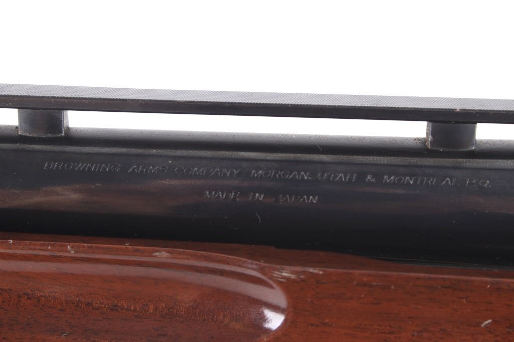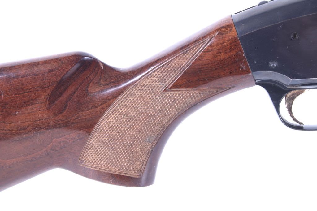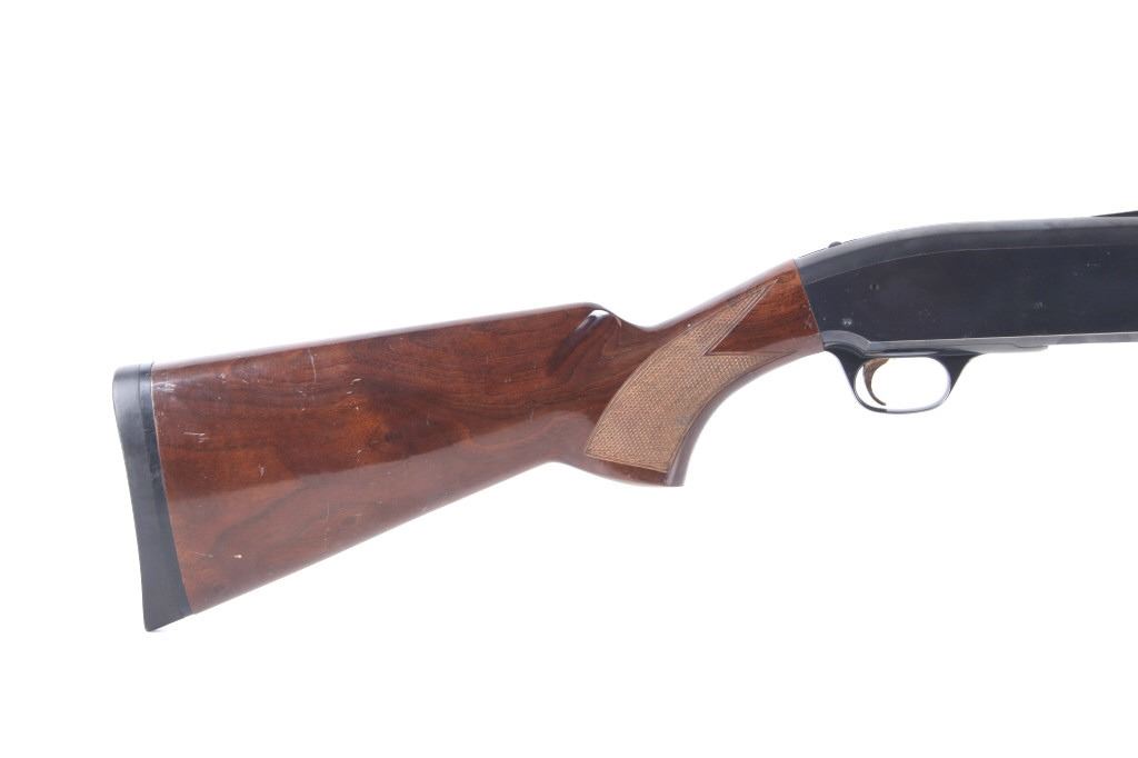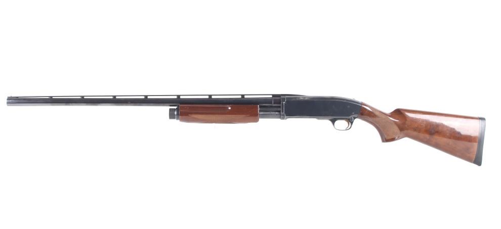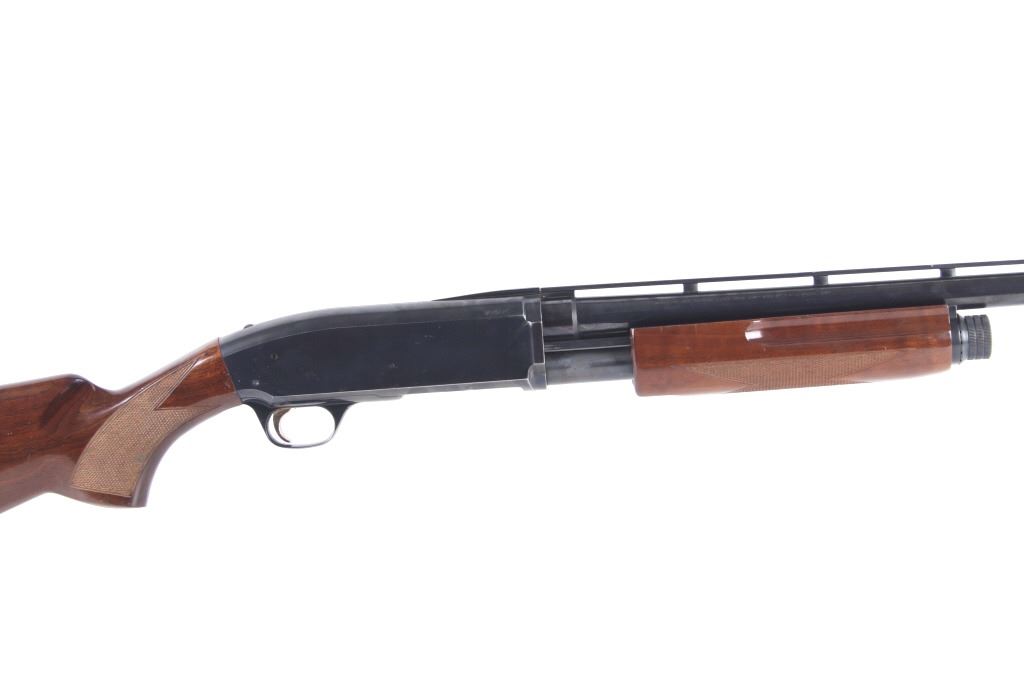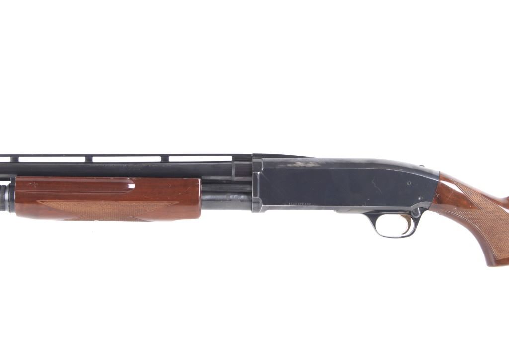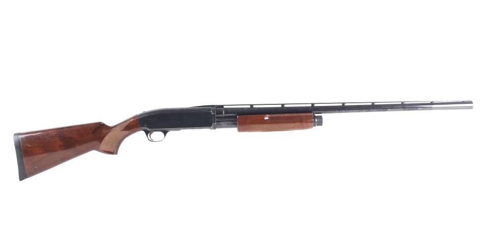 Featured in this lot we have a Miroku Browning BPS Field Model bottom ejecting pump action shotgun chambered in 12 gauge. This shotgun was manufactured for Browning by Miroku in 1988. The shotgun displays a 28" long vent rib barrel, walnut stock and pump grip, under barrel tube magazine, and rubber butt stock. The left side of the barrel is marked with "BROWNING ARMS COMPANY MORGAN, UTAH & MONTREAL P.O. MADE IN JAPAN" and the right side reading "INVECTOR BPS SPECIAL STEEL 12GA- 2 3/4" AND 3" FIELD MODEL 28"". Mechanically the shotgun shows a smooth action and crisp trigger with mechanics showing good operation. The frame and barrel show a blue'd finish with the trigger showing a faded gold finish. The shotgun shows good condition overall with some light wear due to age and use. The piece weighs 7lbs 14oz. Serial Number: 11261PP152. This is a modern firearm and requires a FFL transfer or NICS background check.