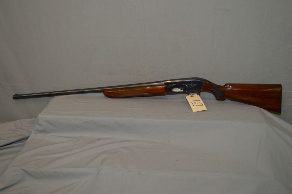 Browning ( Belgium ) Model Double Automatic .12 Ga 2 3/4" Semi Auto Take Down Shotgun w/ 29 1/2" bbl [ blued finish, engraved receiver, copper colored trigger guard, hi gloss finished rounded checkered pistol grip stock & forend w/ Browning butt plate ] Ser # C17568