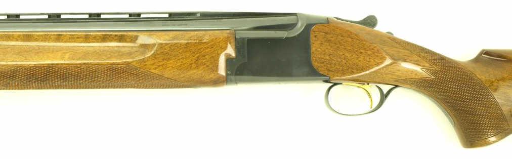 O/U shotgun vent ribbed barrel and high gloss walnut checkered stocks. Remains in very good plus original condition with Morgan adjustable butt pad. Bottom of pistol grip stamped with previous owner name. Excellent action and mirror bores. FFL required.