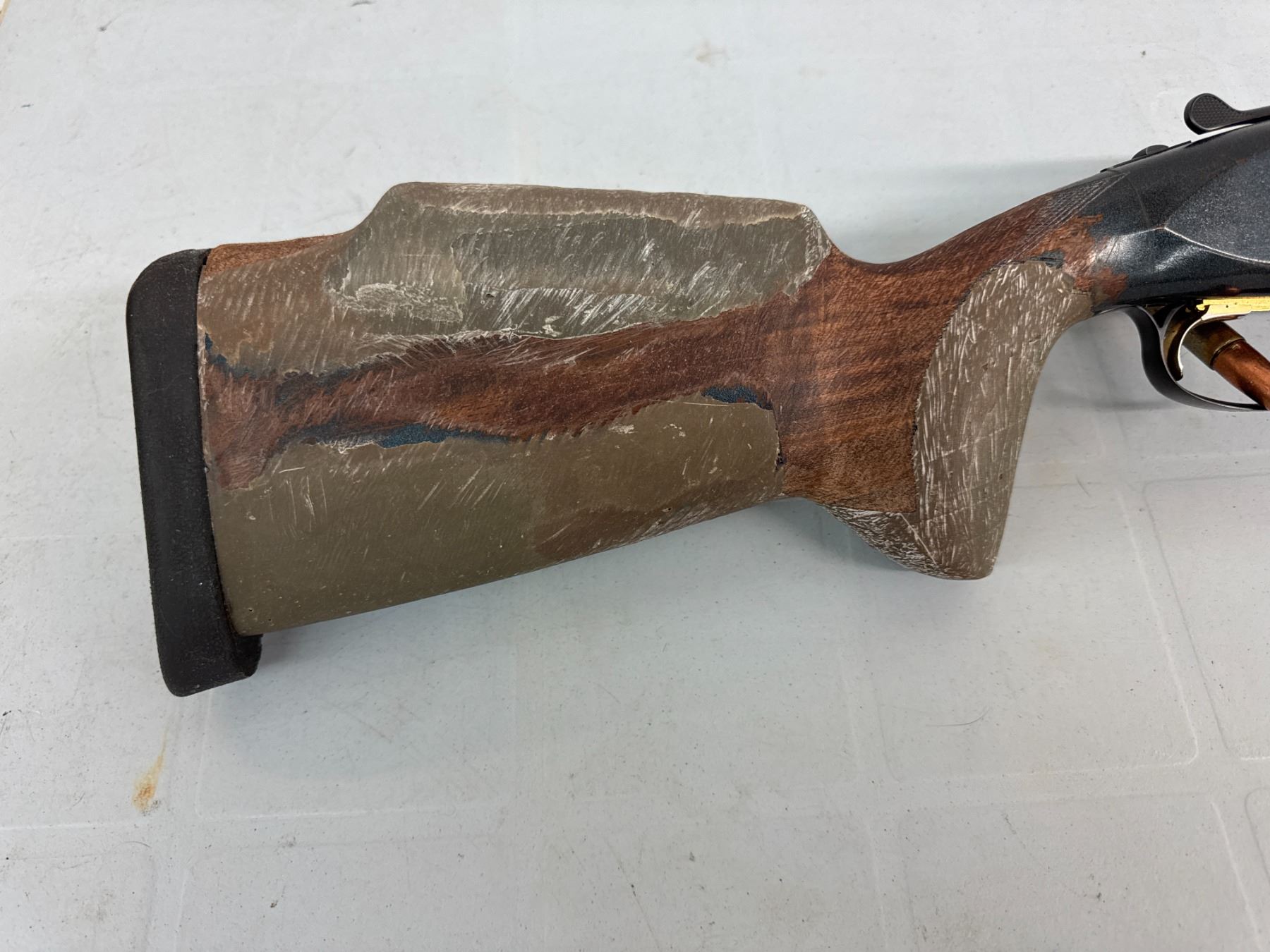 over/under shotgun. rertains+90% or its original finish. action functions like new. Bore on the 30" ribbed and choked barrels is pristine. Rear stock has been modified extensivly Butt plate has been replaced with a poorly fitted recoil pad.