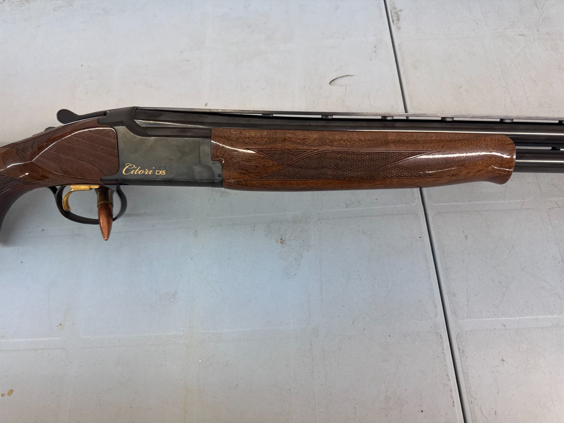 over/under shotgun. rertains+95% or its original finish. action functions like new. Bore on the 30" ribbed and choked barrels is pristine. stocks are in very good condition. Butt plate has been replaced with a poorly fitted recoil pad.