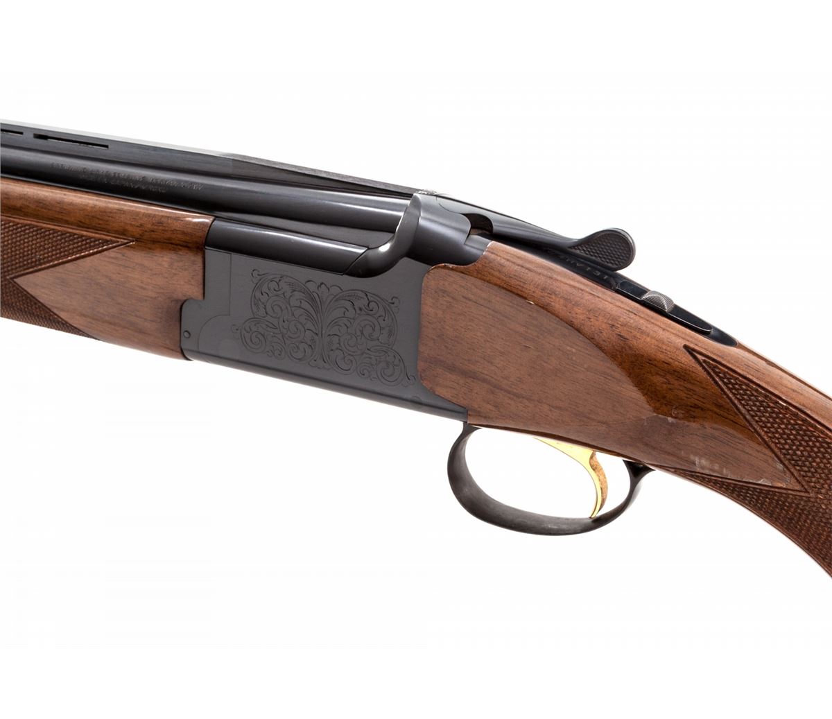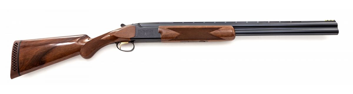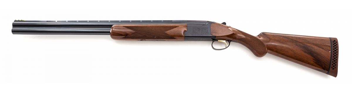 Browning Citori Over/Under Shotgun, #15464MV131, 12 ga., 26'' barrels with Invector chokes, green fiber-optic front sight, blue finish with roll-engraved frame, factory checkered walnut stock, with Prince of Wales style pistol grip and Browning butt pad. Condition is excellent showing just light field use, as minor flattening to left side pistol-grip checkers and minor impressions to stock. Action is crisp, bores are bright. Est.: $750-$1,000. (Modern)