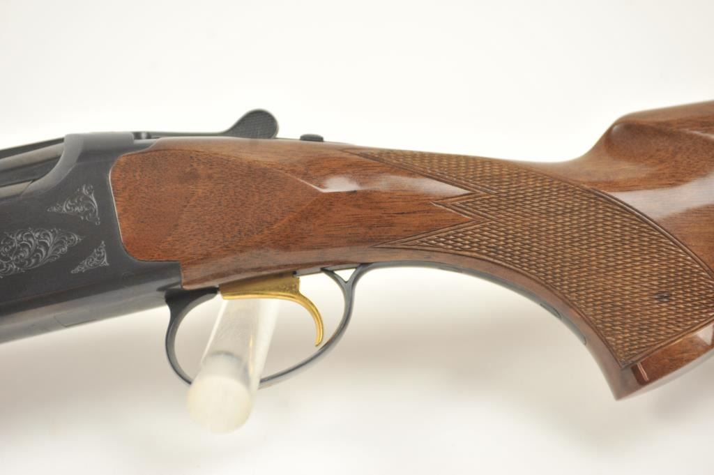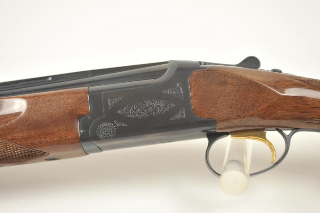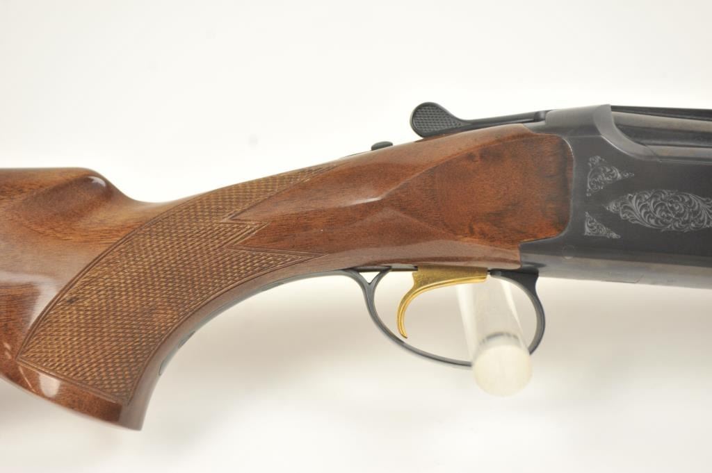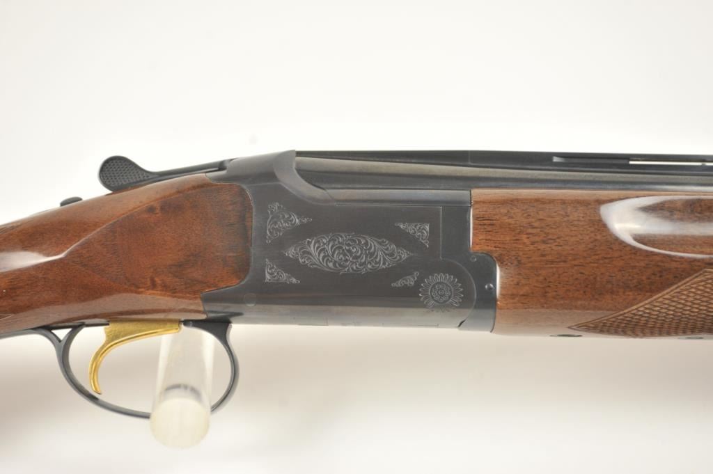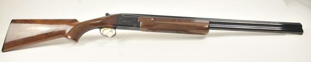 Browning Citori O/U shotgun, 20 gauge for 2 ¾” and 3” shells with 26” barrels and 5 screw in Invector chokes. The shotgun is in factory dimensions with a Browning butt plate, Serial #12624PR163. The shotgun is in fine to excellent used condition showing minor use and firing with the sticker still on the barrel in 98-99% condition. The lot includes a Browning luggage case. Est.: $700-$1,400. (Modern).