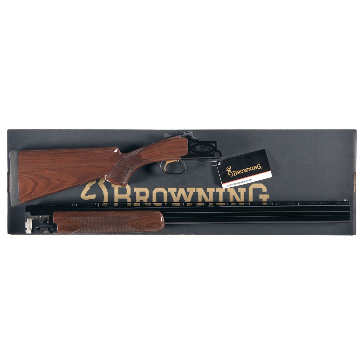 Manufactured in Japan with front and mid bead sights, 2 3/4 inch and 3 inch chambers, and invector plus choke system. Scroll pattern engraving on the receiver with single gold wash trigger and tang mounted safetly. Fitted with checkered forearm and pistol grip stock with a solid factory rubber buttplate. Length of pull is 14 1/4 inches. Complete with original box numbered to gun, extra improved cylinder choke with tool and manual.