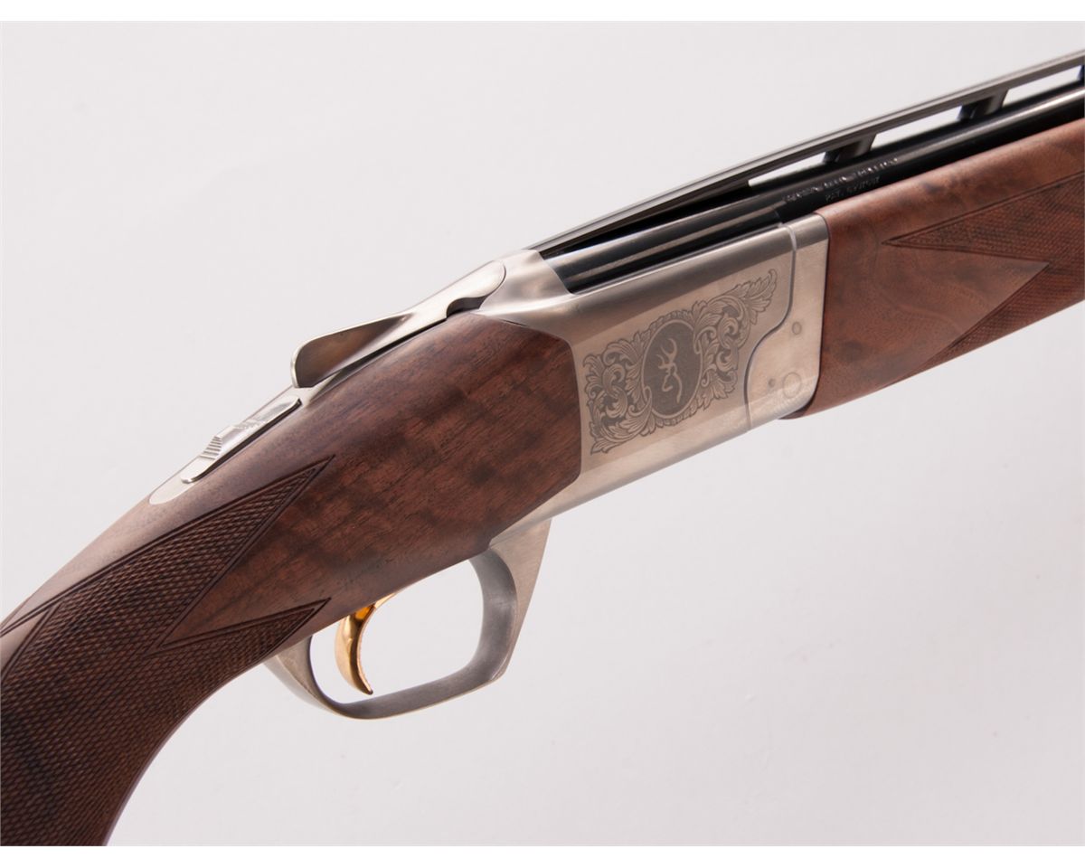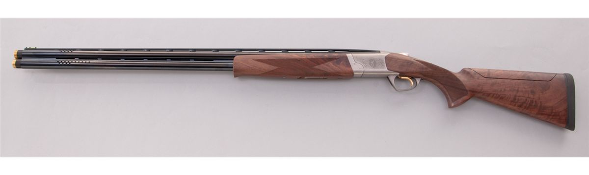 Browning Cynergy Classic Sporting Over/Under Shotgun, #01759MR132, 12 ga., 32'' ported vent rib barrels with 2-3/4'' chambers, blue barrel, high visibility fiber-optic front sight, etched Browning logo to bright receiver side, traditional oil finished walnut stock with adjustable comb and Schnauble forearm. Includes full complement of extended choke tubes, original cardboard box, as well as Cynergy padded luggage case. Condition is excellent, appearing unfired. Length of pull 14-7/8''. Last MSRP $3,600. Est.: $2,500-$3,000. (Modern)