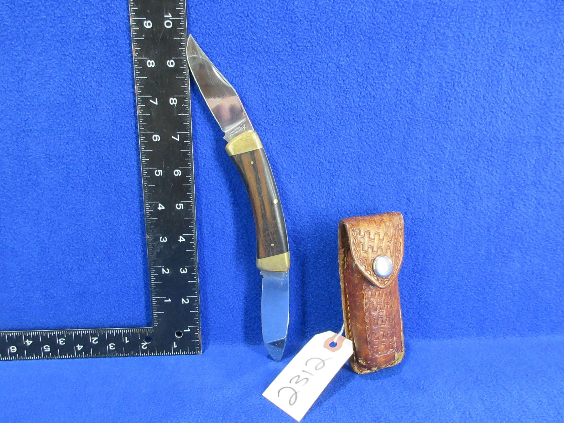 Browning Folding 2 Blade Knife with Leather Sheath - Blades Approx. 3"