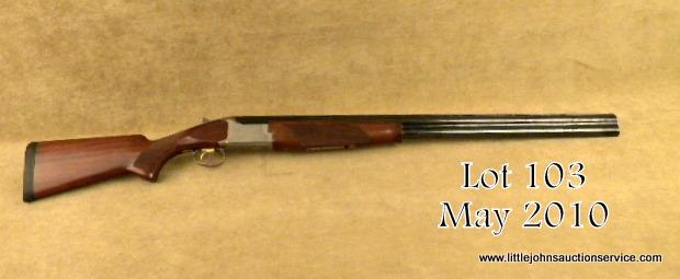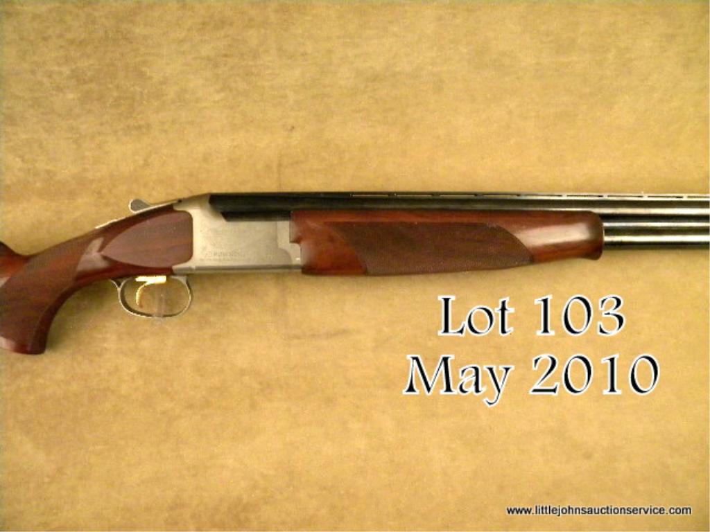 Browning Invector-Plus Citori Grade 1 Model L 25 O/U shotgun, 12 gauge, 2-3/4” chambers, 30” ventilated rib ported barrels, ornamented stainless steel receiver, checkered wood stocks, gold accented trigger, black hard rubber buttplate, #03057NTK13. This gun is in overall excellent condition showing approx. 98% original finish, excellent bores, crisp actions, fine wood stocks with some scattered scratches and mars from storage. Est.: $700-$1,400.