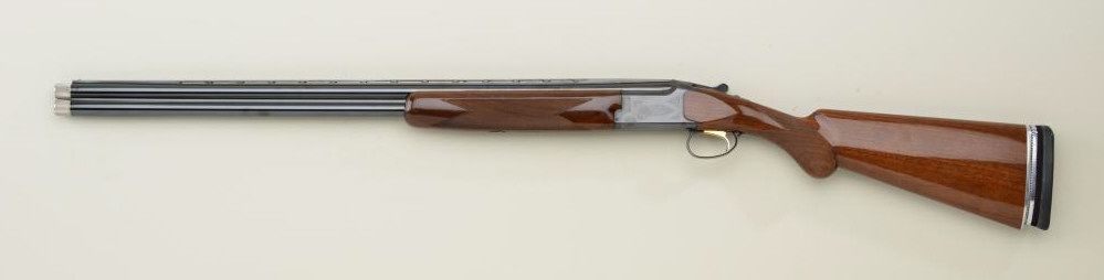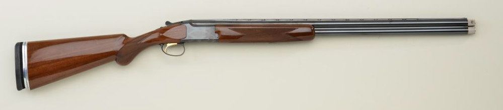 Browning Invector-Plus Citori O/U shotgun, 20 gauge, improved/modified over modified screw-in chokes with extra chokes in plastic case; 2-3/4” and 3” shells, 28” ventilated rib barrels, blue finish, checkered woodstocks, adjustable butt plate, #25987. This gun is in overall like new condition showing little use or handling, some scratches to wood from storage; accompanied by a soft carry case. Est.: $750-$1,500.