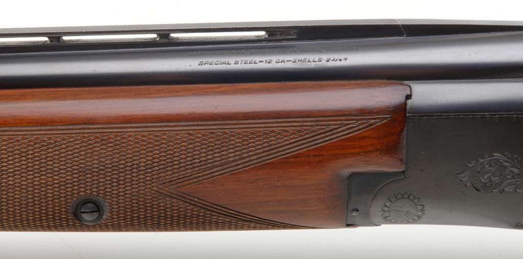Browning Lightning 12 gauge Over/Under shotgun, 30” blued barrels with full length rib, finely checkered wood stocks and black rubber ventilated pad. Serial #20315. A beautiful shotgun in very good condition that has seen little use. The bores are very good and the wood stocks show only small marks consistent with storage. Est.: $600-$1000