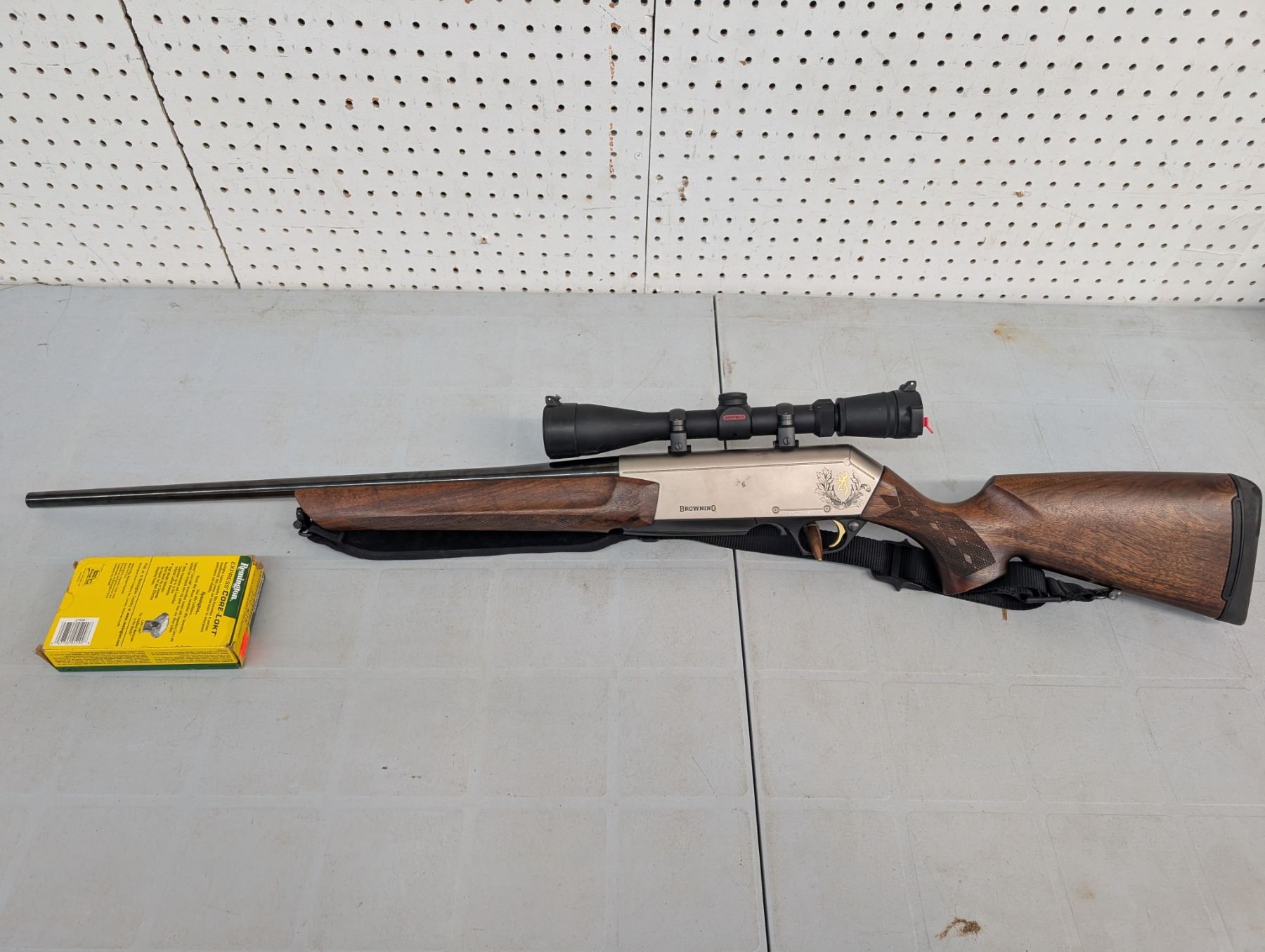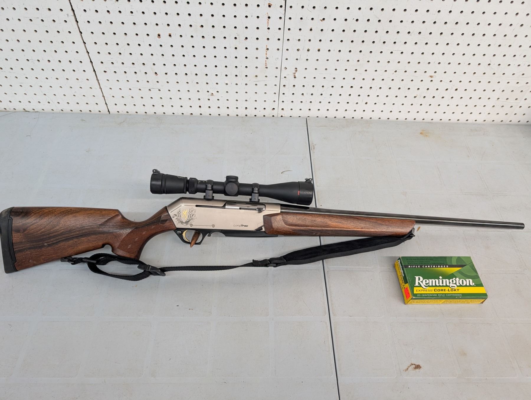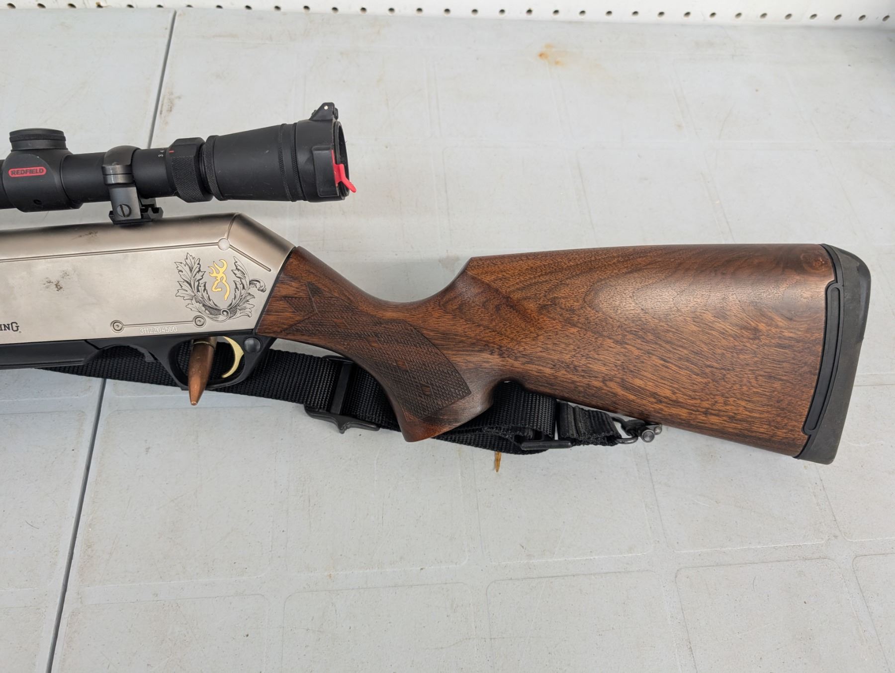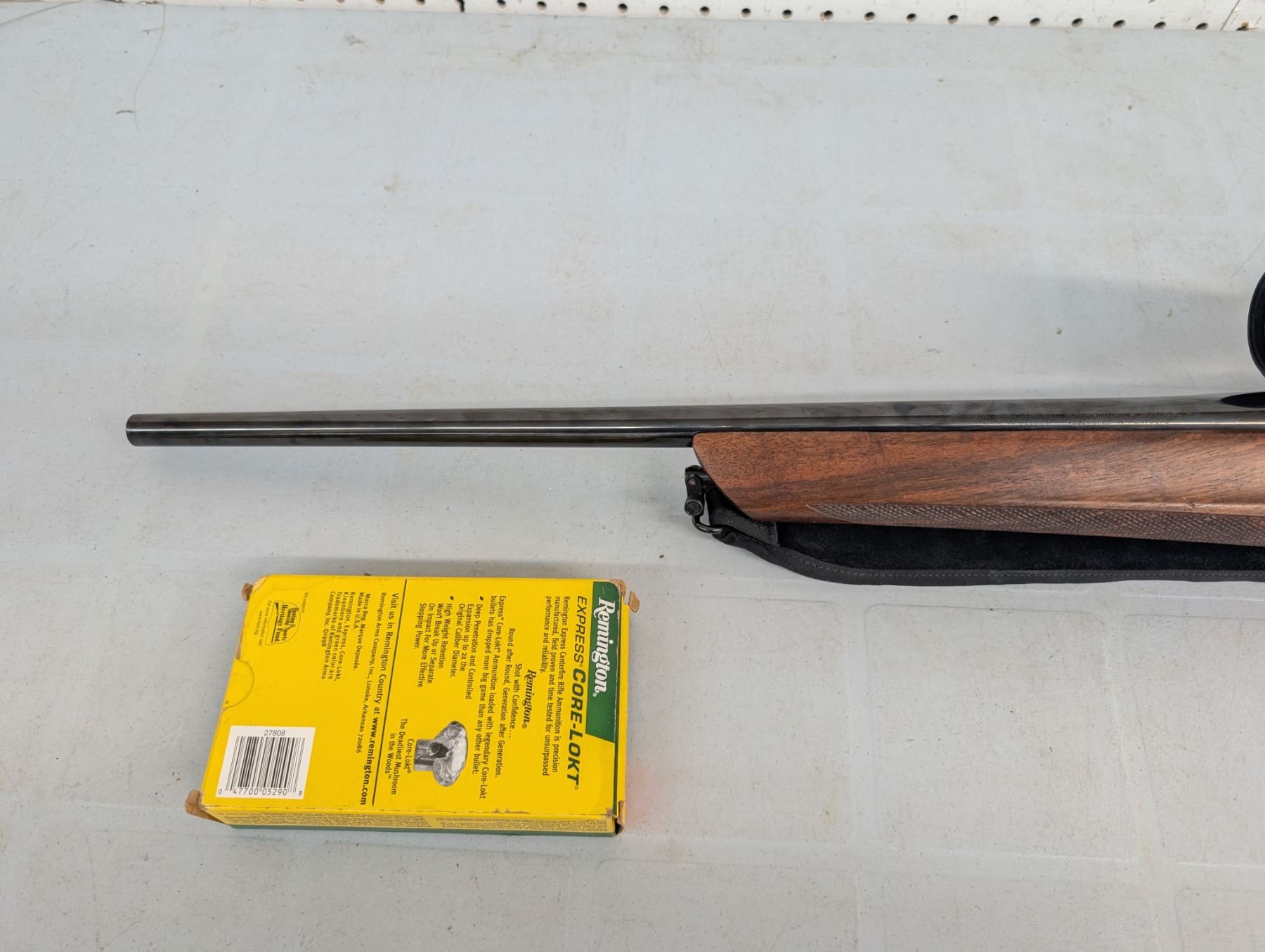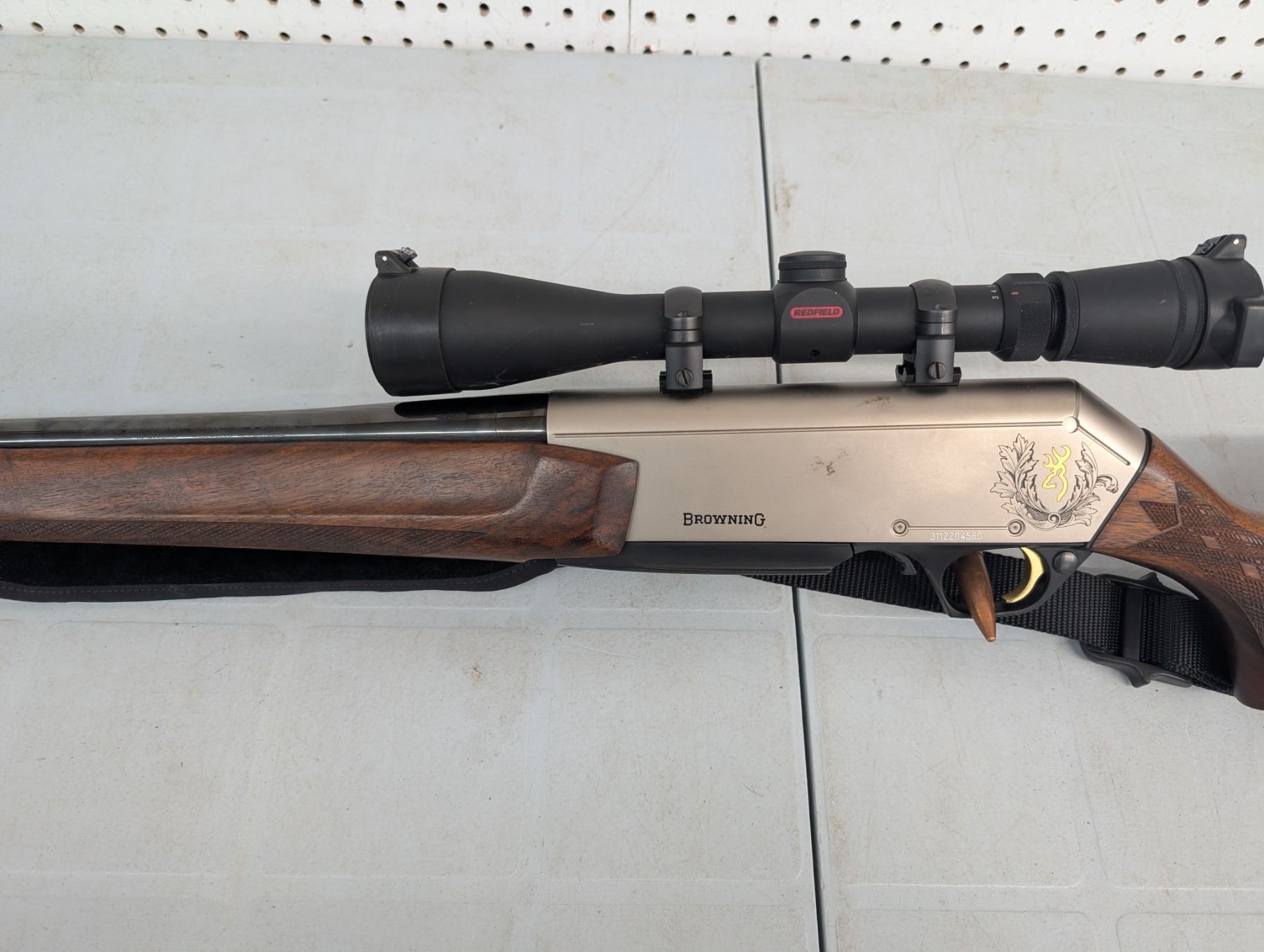 Semi auto. retains about 90% of original finish. Bore is excellent. action functions smoothly. stock is excellent. comes with sling and redfield 3-9x36 scope. additional partial box of ammo included.