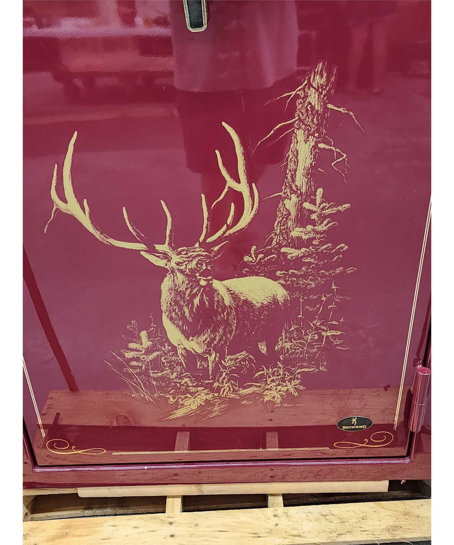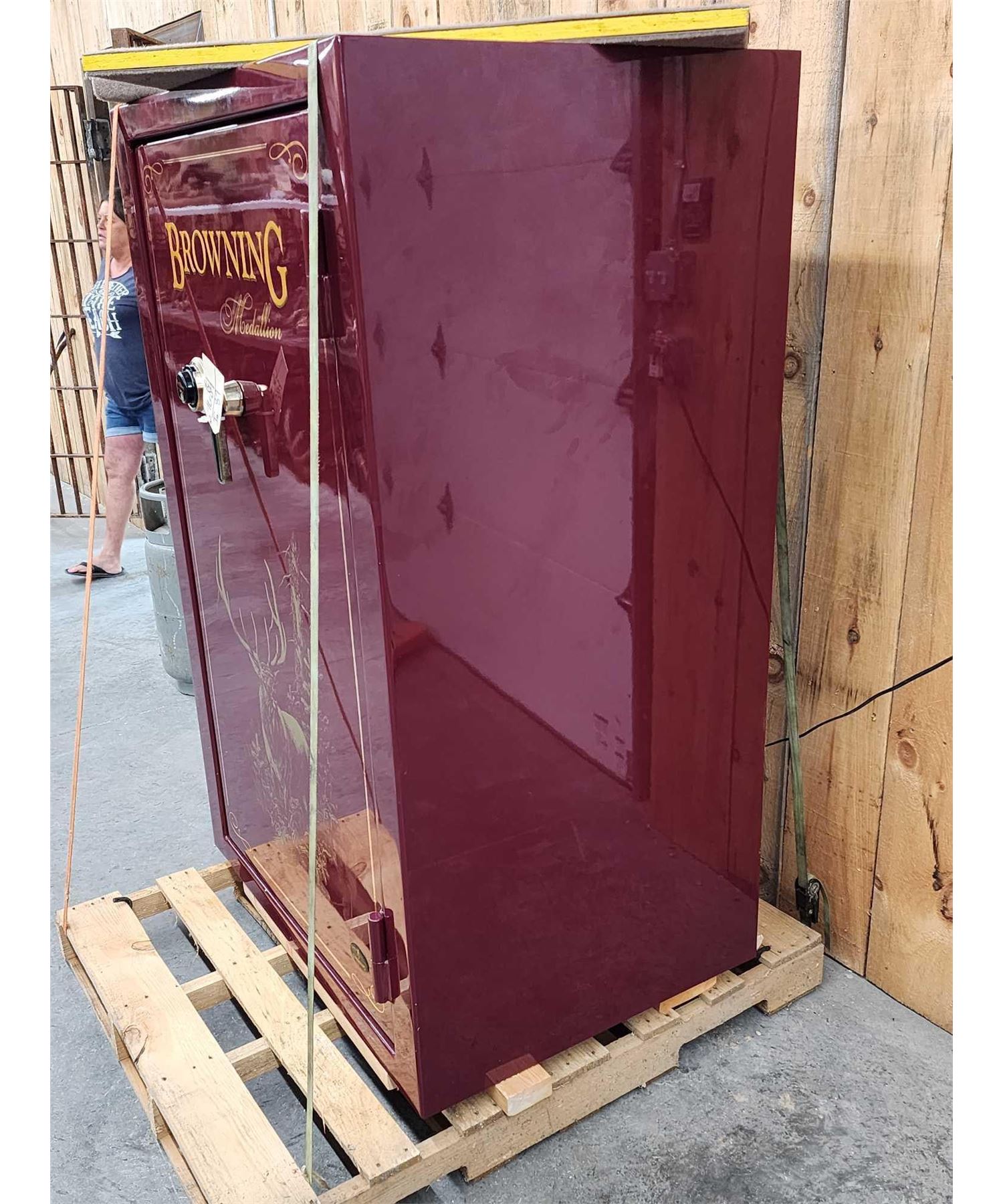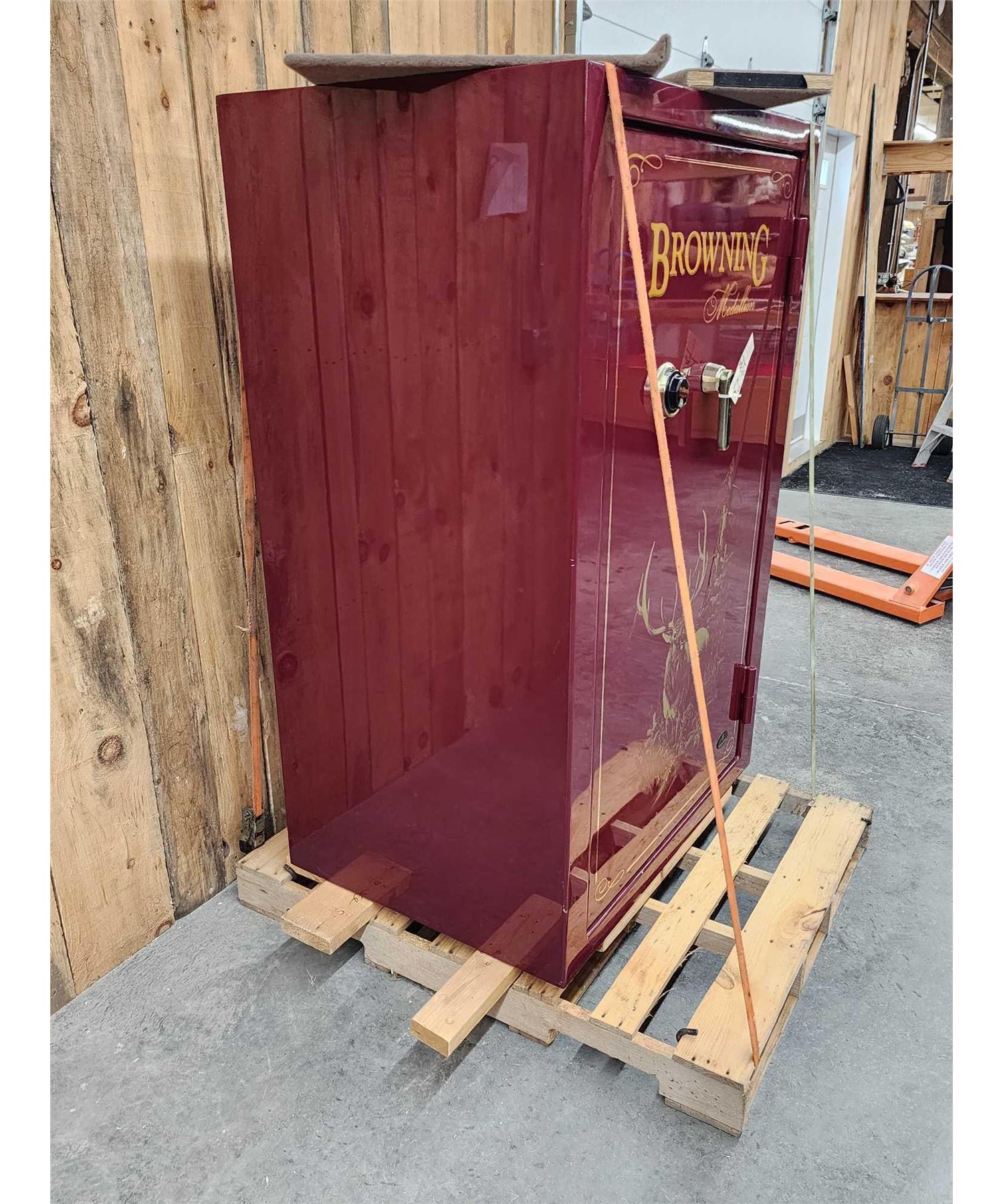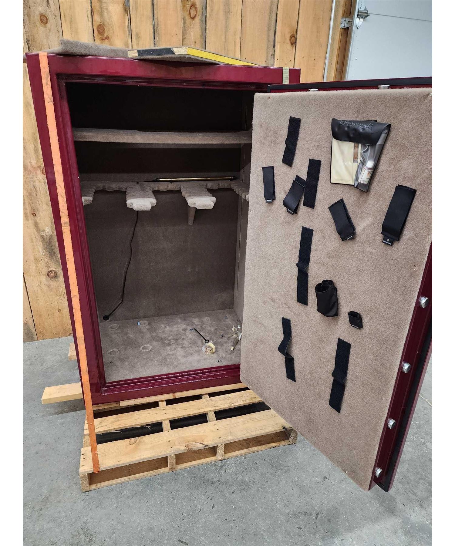 76.84 Holds 40 long guns with plenty of room for lots of hand guns accessories great condition with built-in dehumidifier bar comes with key combination This is local pickup or can be delivered for a feeNote : straps pallet not included they are just there for the safety of attendees productsOverall dimensions about 60.5" tall x 28" deep x 39" wide
