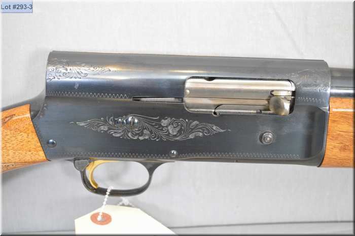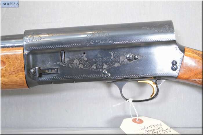 Browning Mod Auto Five Light Twelve .12 Ga 2 3/4" Semi Auto Shotgun w/ 29 1/2" bbl [ appears excellent, blued finish, engraved receiver , hi gloss finish, rounded pistol grip stock w/ Browning butt plate, gold plated trigger w/ vinyl gun case ] Ser # 6G53396