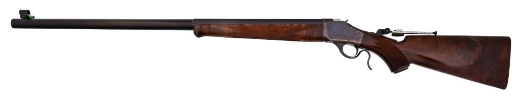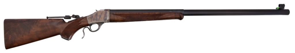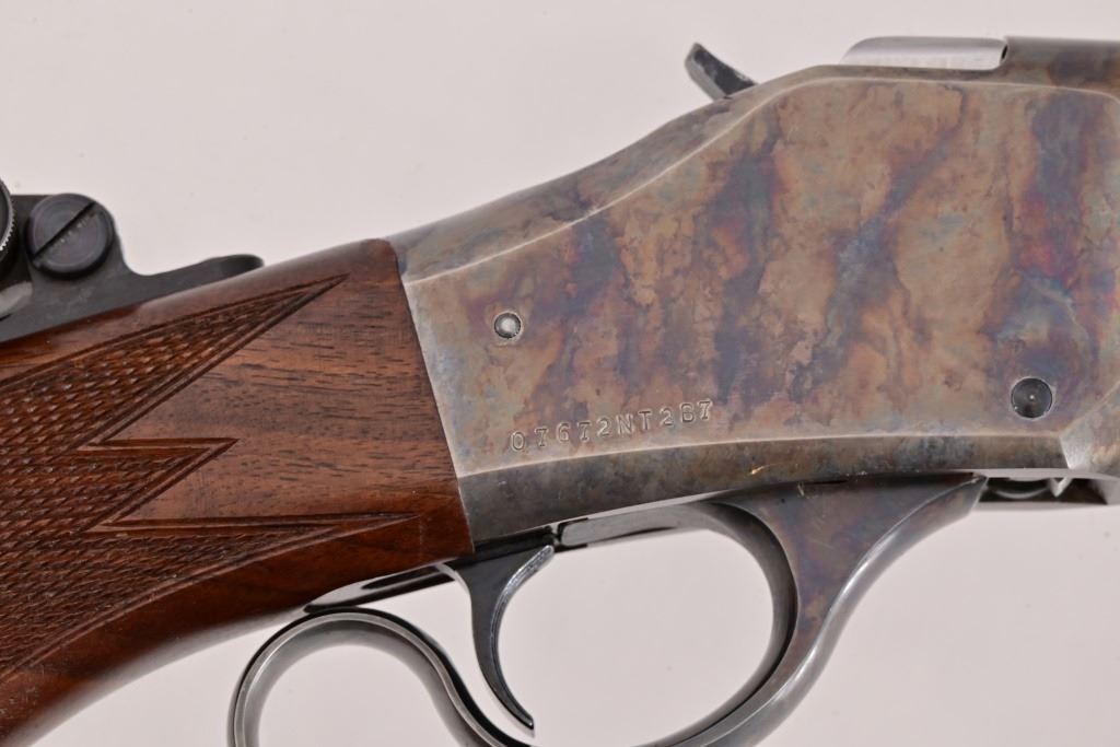 S/N 07672NT2B7. Half-round barrel measures 30" and features level gauge and flip up target peep sights. Case hardened frame, deluxe finished checkered wood stock. Very nice condition.