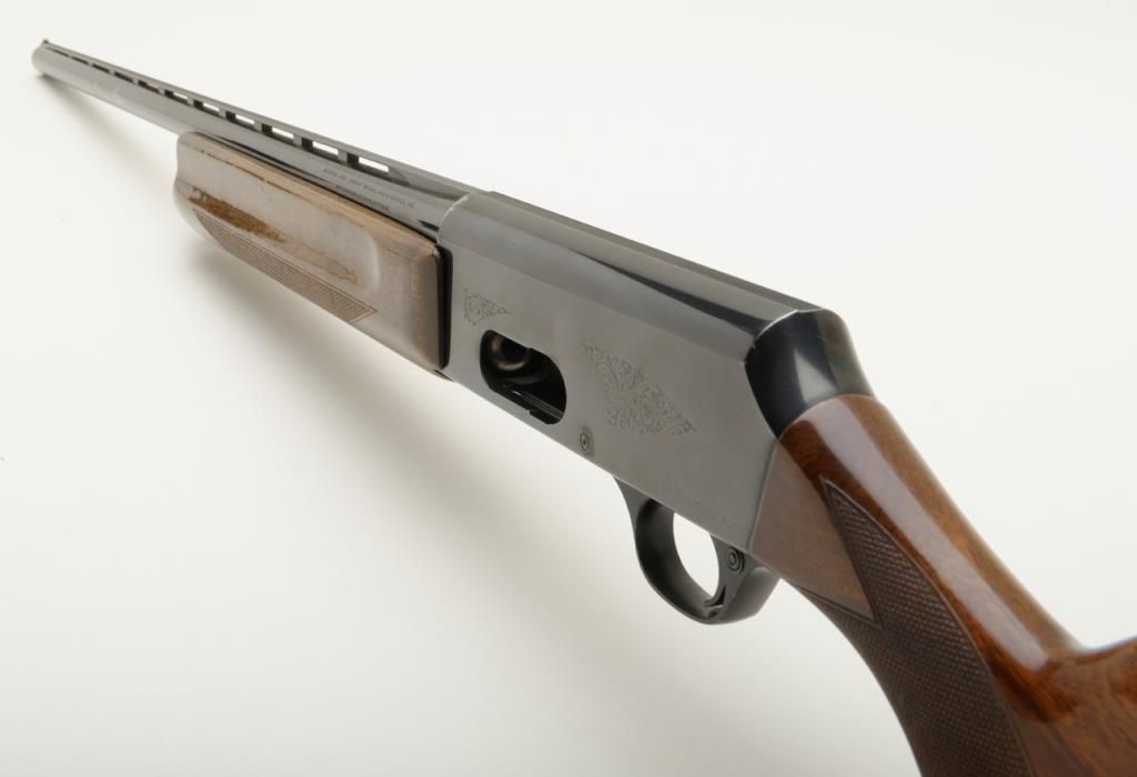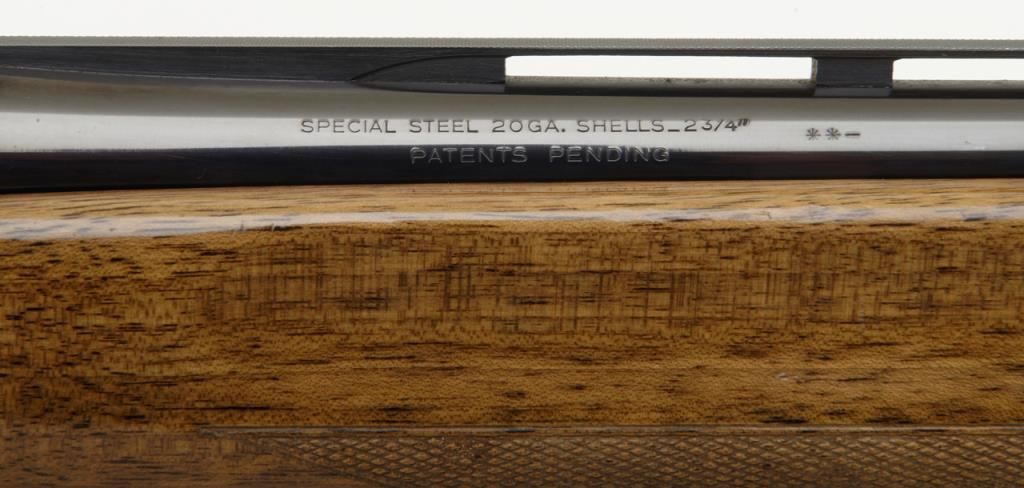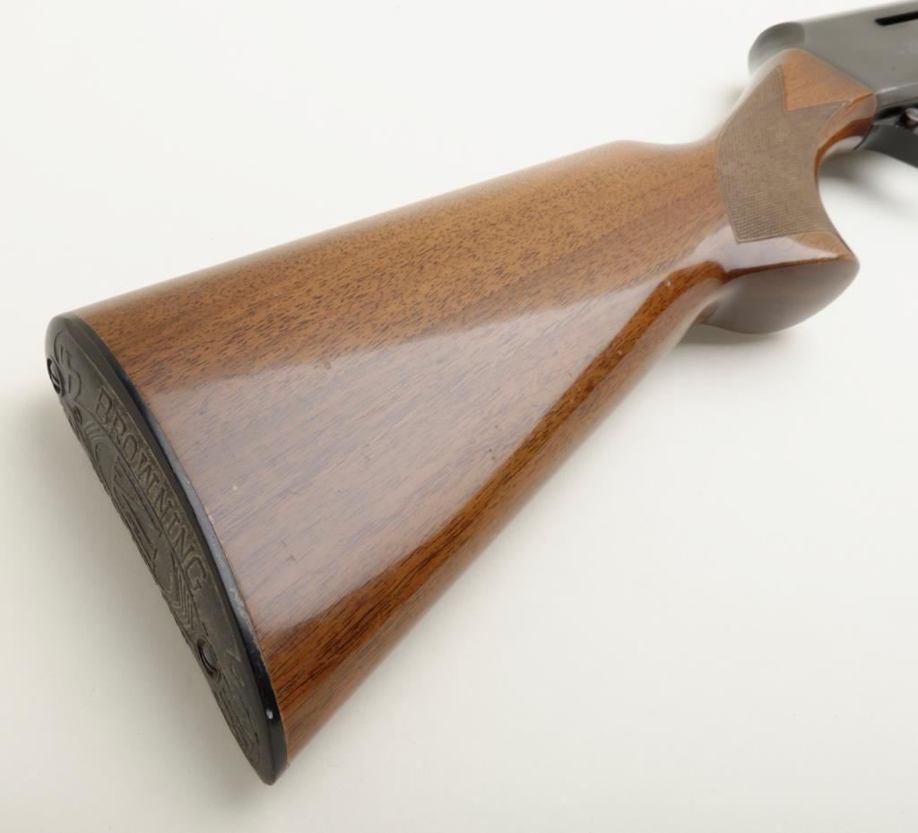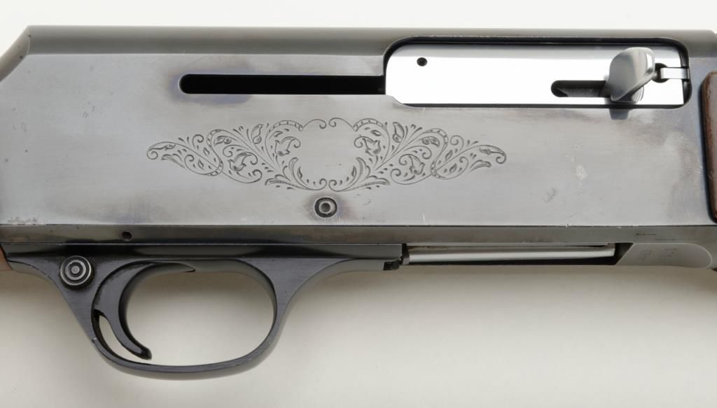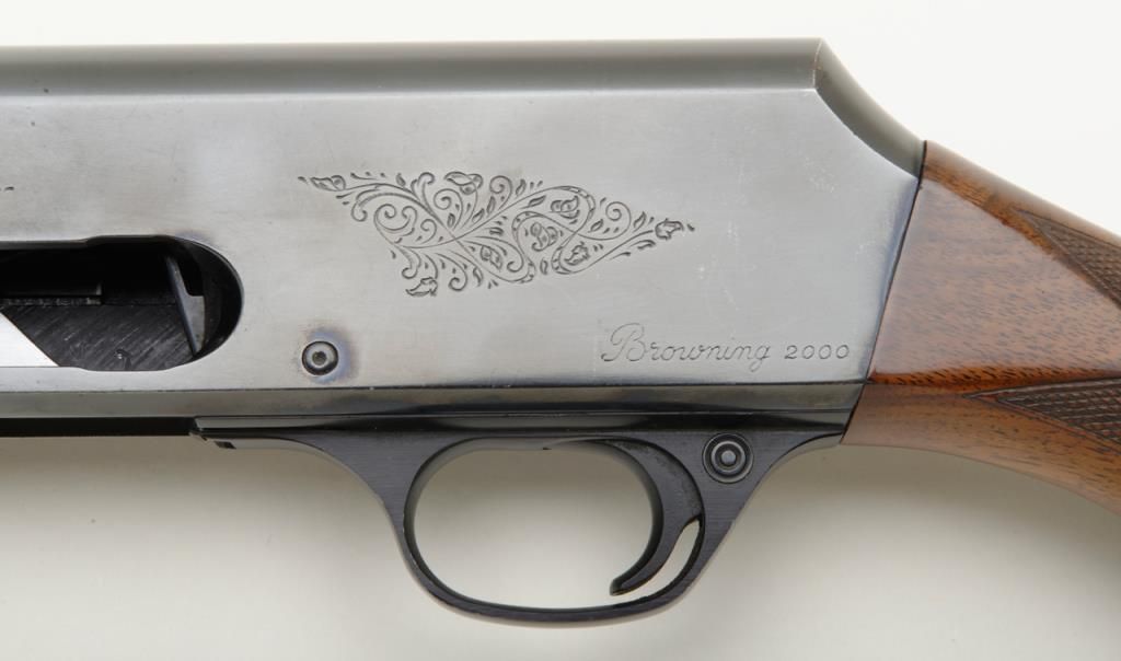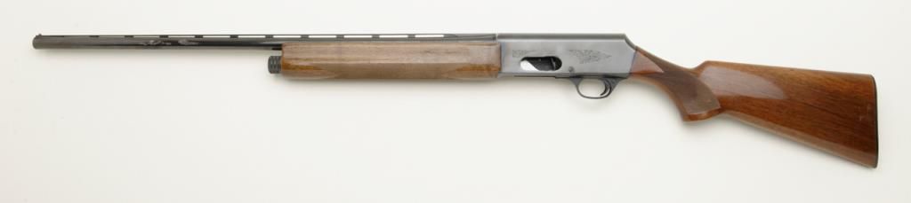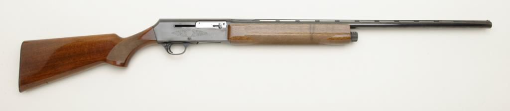 Browning Model 2000, 20 gauge semi-automatic shotgun made in Belgium assembled in Portugal showing 26” ventilated ribbed barrel, choked improved cylinder, in very good condition, serial number 07048631RT. The barrel shows 2 approximately 1” areas of cleaning and loss of finish approximately 7” and 9” back from the muzzle on the left side. The stock shows some minor handling and slight use. The original hard rubber butt plate is retained and the action is good and the bore is fine. If not for the blue loss on the barrel the condition would be rated near fine. Est.: $300-$600