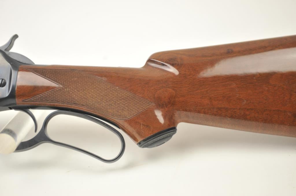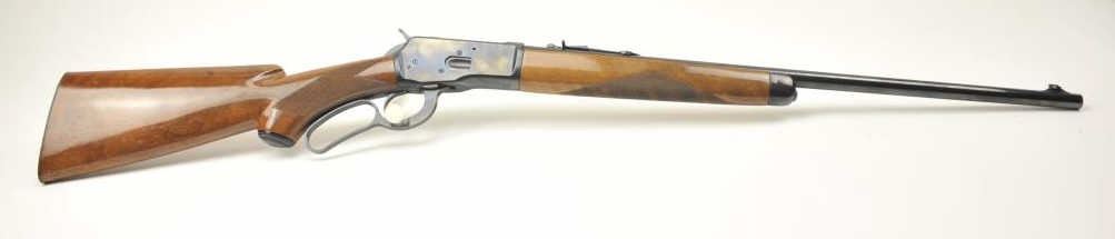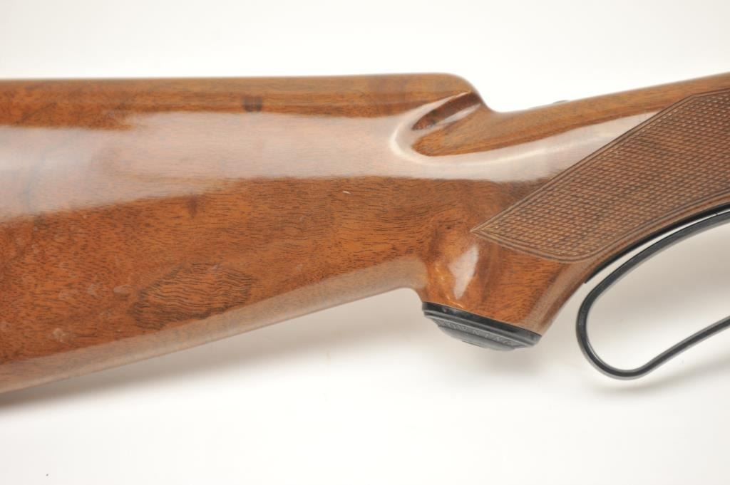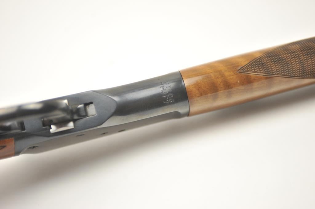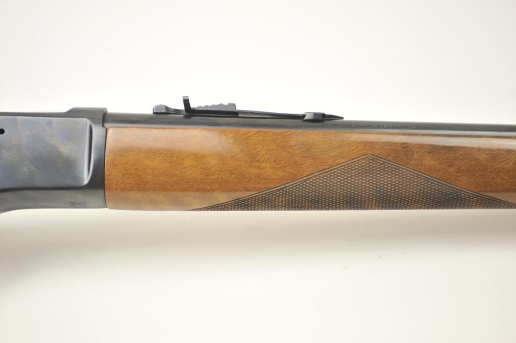 Browning Model 53 lever action rifle, .32-20 Winchester caliber, Serial #01106NM3F7. The rifle is in fine overall condition with a 22” barrel and a button magazine. The finely checkered Walnut pistol grip stock is in very good condition. The bore is good, the action is crisp and the markings are sharp on this long out of production Model 53. Est.: $600-$1,200. (Modern).