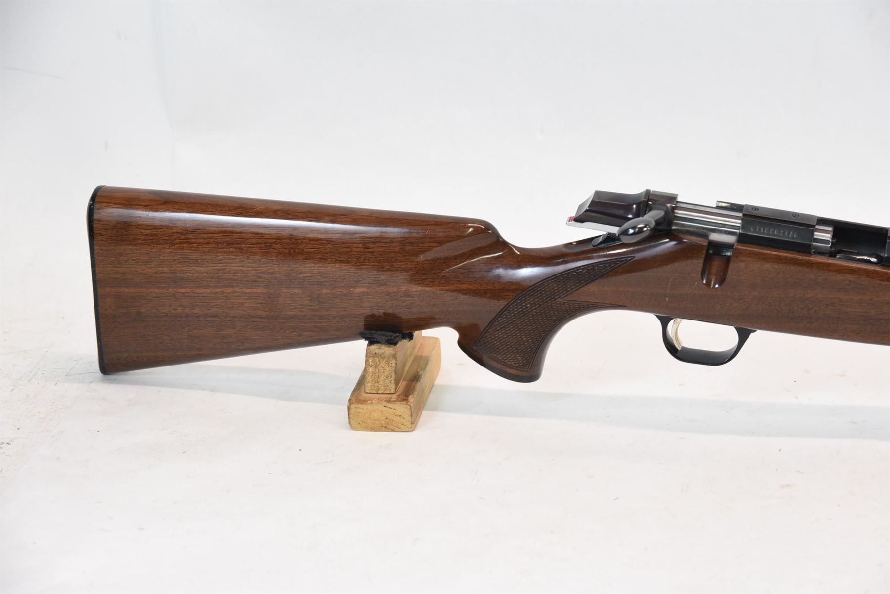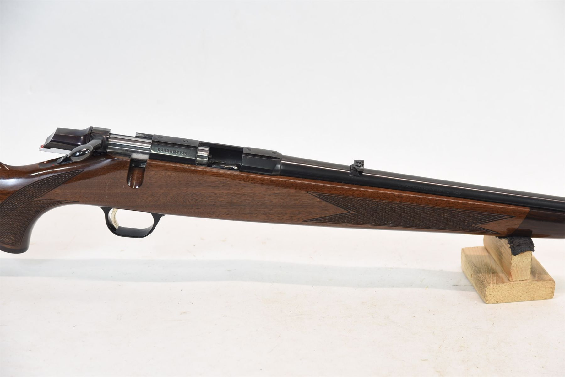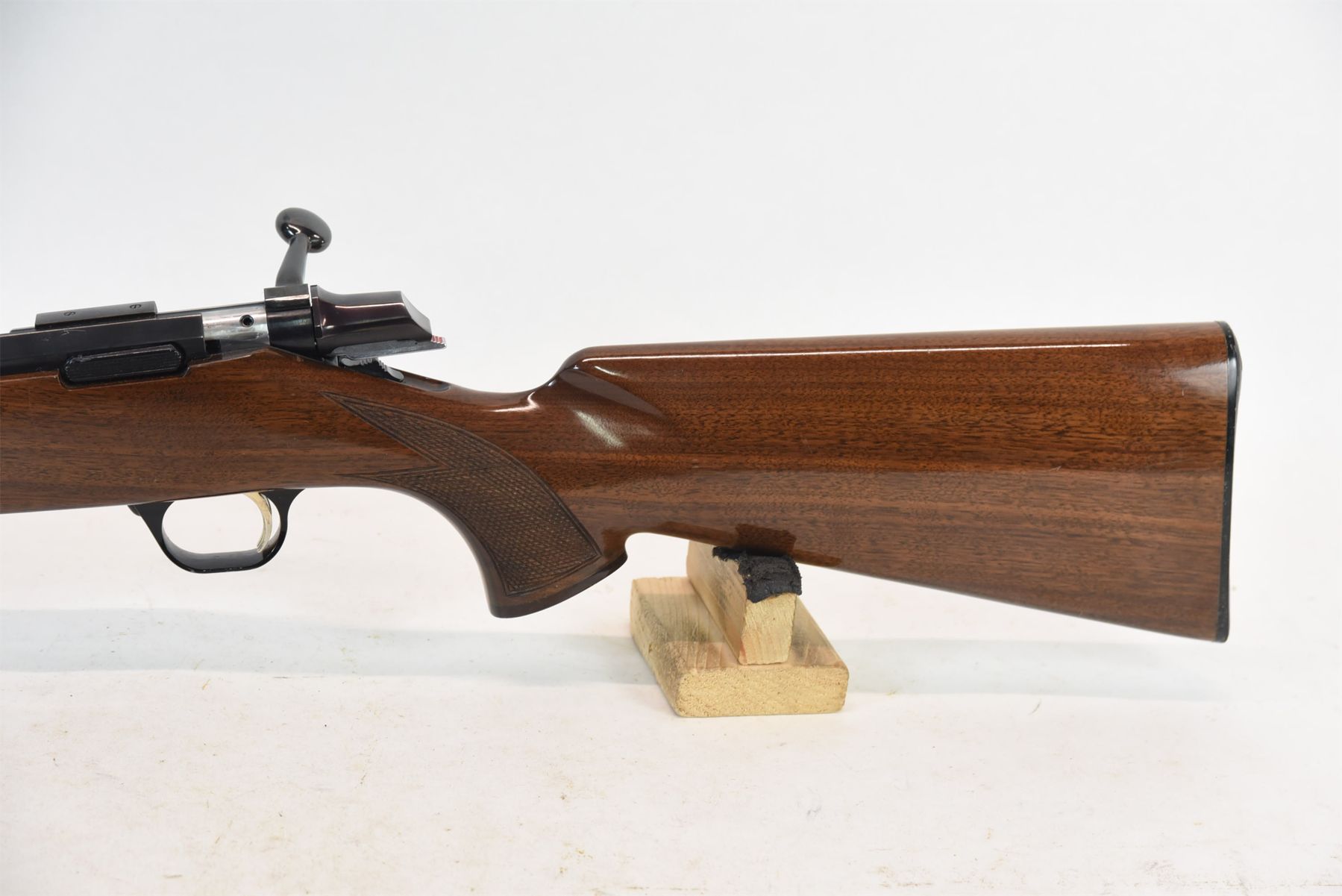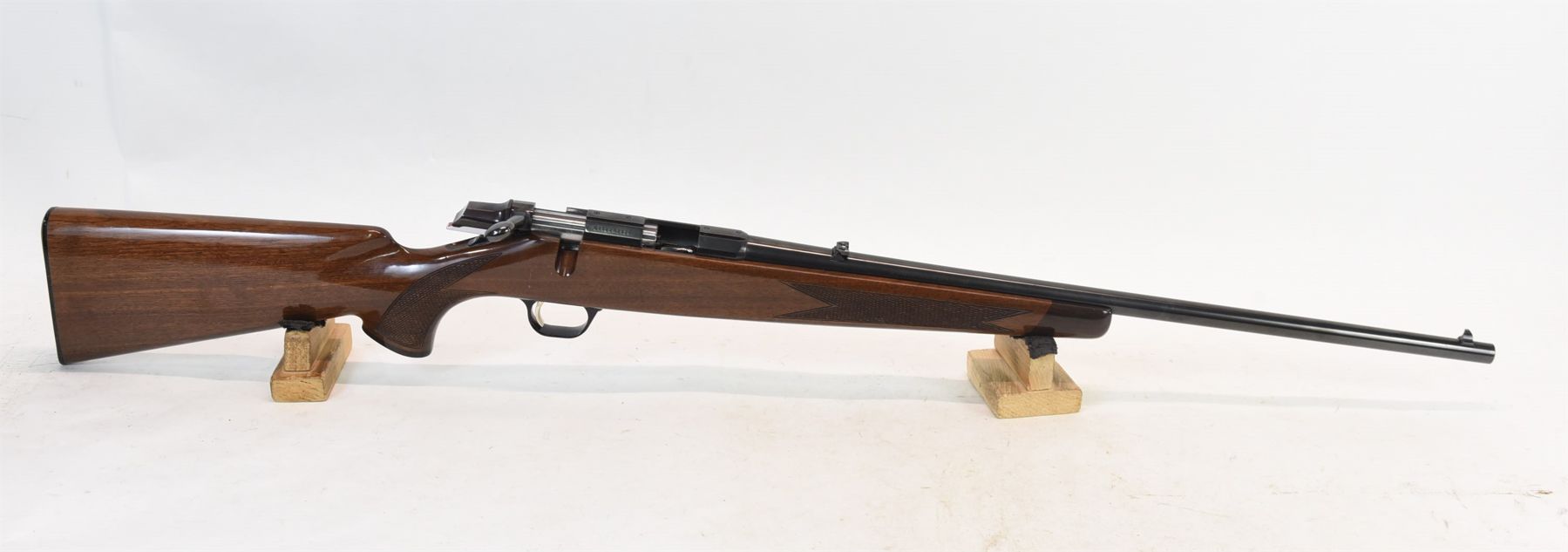 The wood has some light handling marks. The bluing is very good. The bore is excellent. Comes with a 15-round factory magazine.