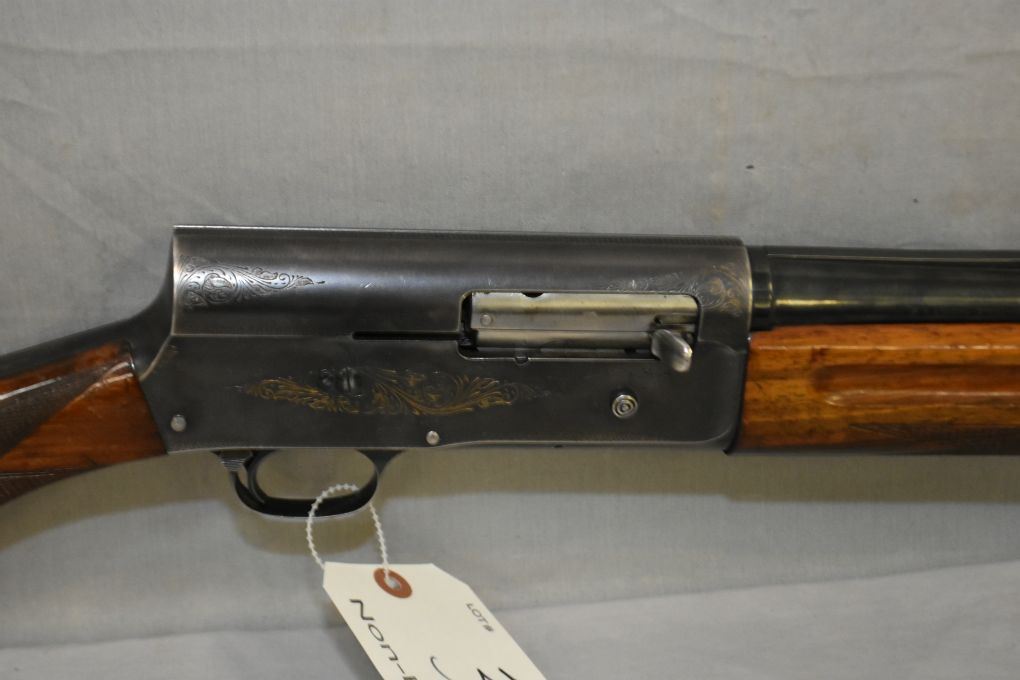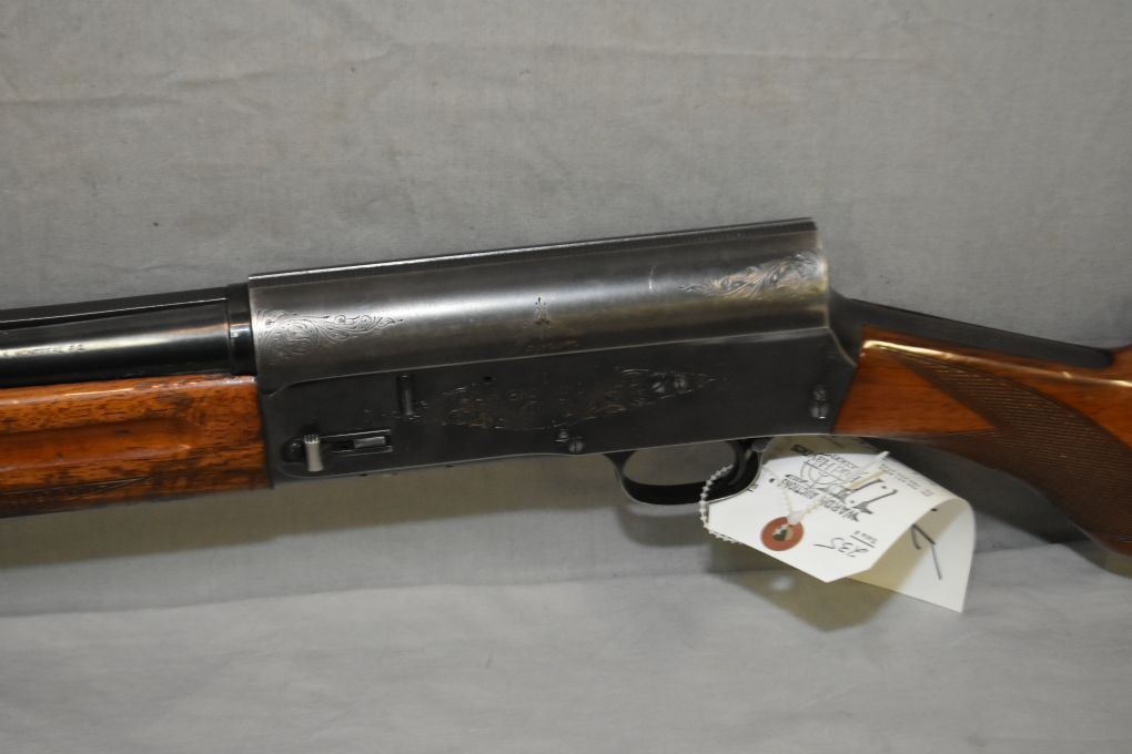 Browning Model Auto 5 Magnum .12 Ga 3" Semi Auto Shotgun w/ 27 1/2" vent rib bbl [ blued finish, starting to fade in some areas, engraved receiver with some fading gold highlights, gloss finish rounded checkered pistol grip stock & forend, w/ Browning recoil pad ] Ser # 2V47425