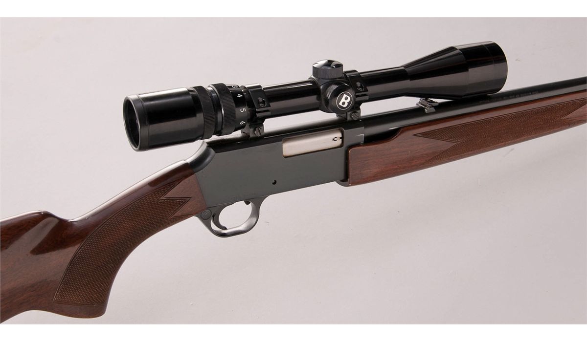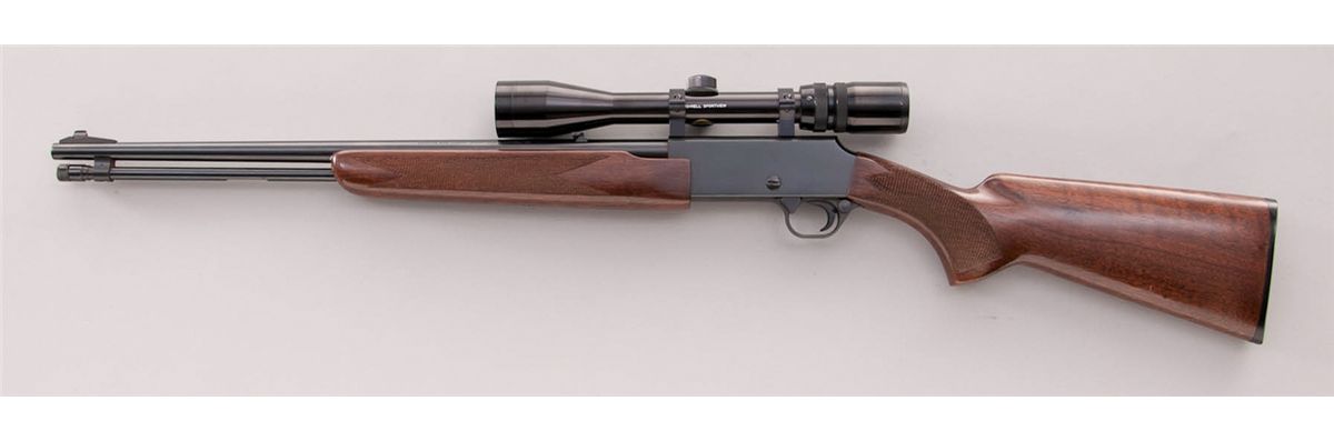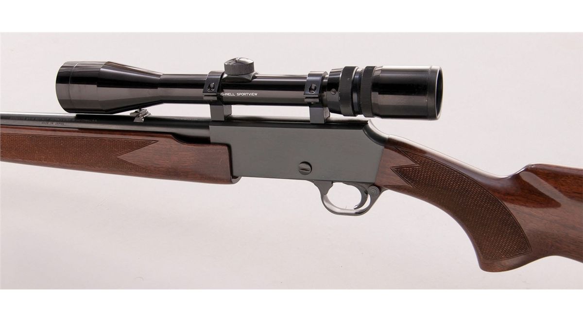 Winchester Model BPR Pump Action Rifle, #17686RN176, .22 mag. cal., 20'' barrel, blue finish, checkered walnut stock, with Bushnell 3x9 Sportview scope. Condition is excellent showing only light use in actioning areas. Stock with minor handling marks. Action is crisp, bore is bright, scope optics are clear. Est.: $400-$600. (Modern)