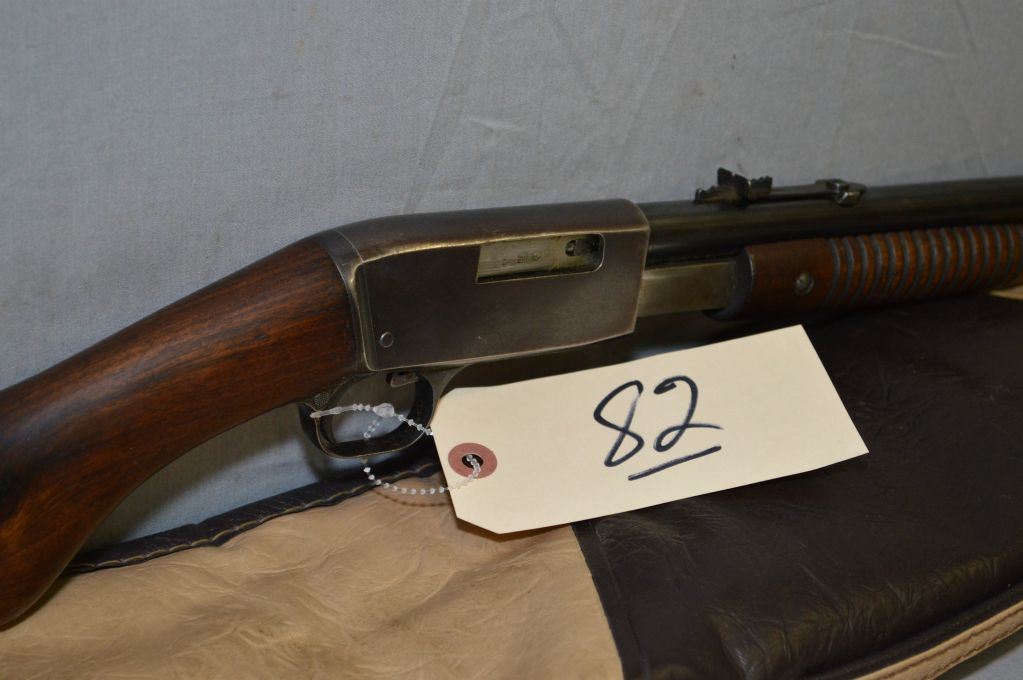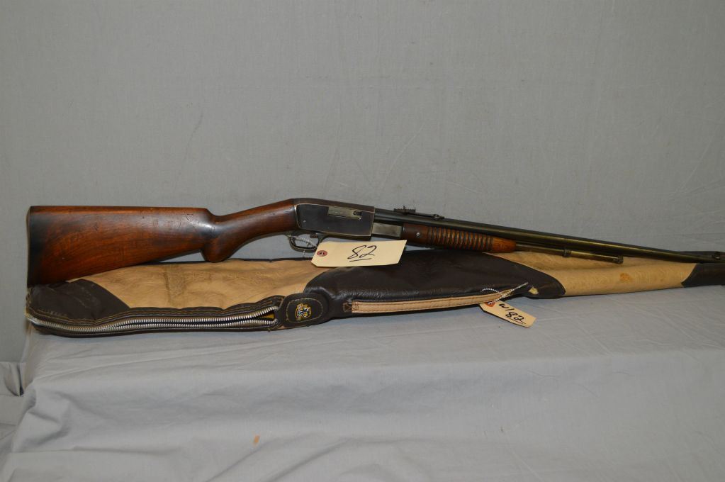 Browning Model Trombone .22 Long ONLY Cal Pump Action Rifle w/ 22" bbl [ blued finish starting to fade, good wood, rust on butt plate c/w vinyl gun case ] Ser # 71290