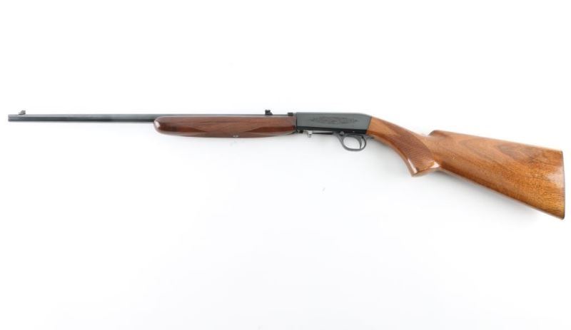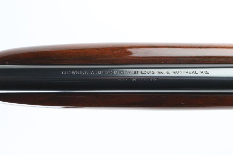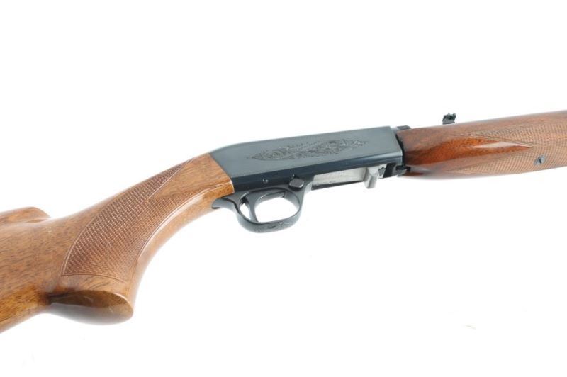 Semiautomatic rifle manufactured in Belgium by Fabrique Nationale. Grade I. Manufactured 1967. Imported for Browning Arms Company of St. Louis, MO. Features a high-polish blued finish, light coverage floral scroll engraving, Belgium proofs present. 19 1/4" take-down barrel, post/bead front sight with brass bead, elevation adjustable folding leaf rear sight, tubular magazine in butt, smooth trigger, push button safety, serrated charging knob on the underside of the bolt, checkered walnut forend with high gloss finish and semi-pistol grip shoulder stock with serrated metal buttplate. Bore appears excellent/bright. Retains 98% polished blue with very minor scratches. Wood is in excellent condition with few light scratches. NRA Condition-Very Good. C&R Firearm.