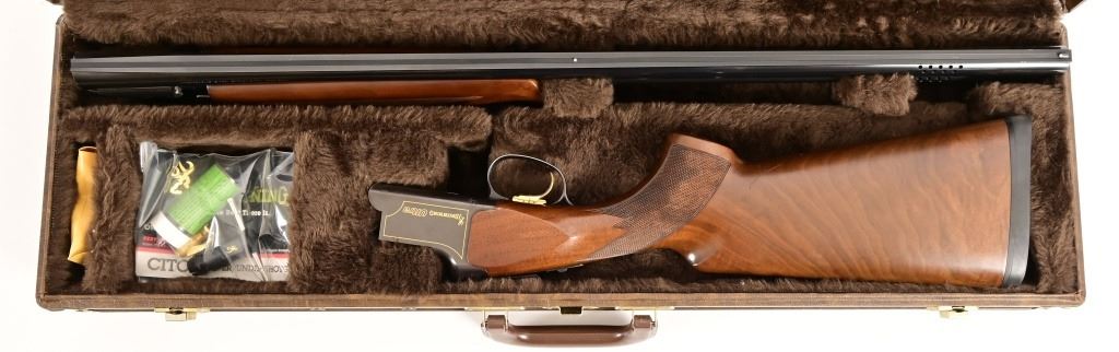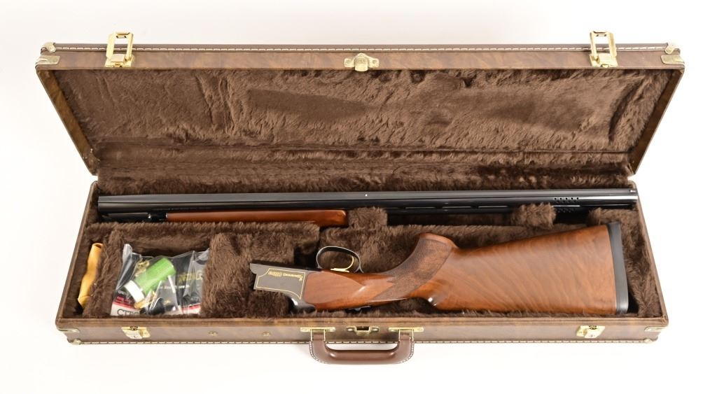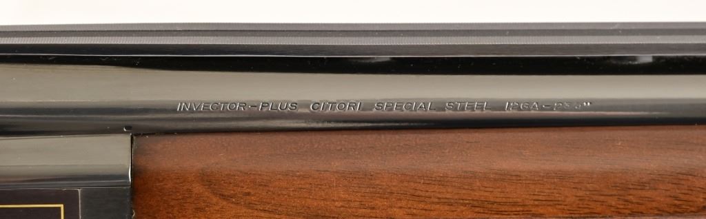 S/N 11736NVD13. Invector-Plus Citori Special Steel 30" barrel, chambered for 2 3/4" shells, checkered wood stock. Cased in leather Browning case. Modern