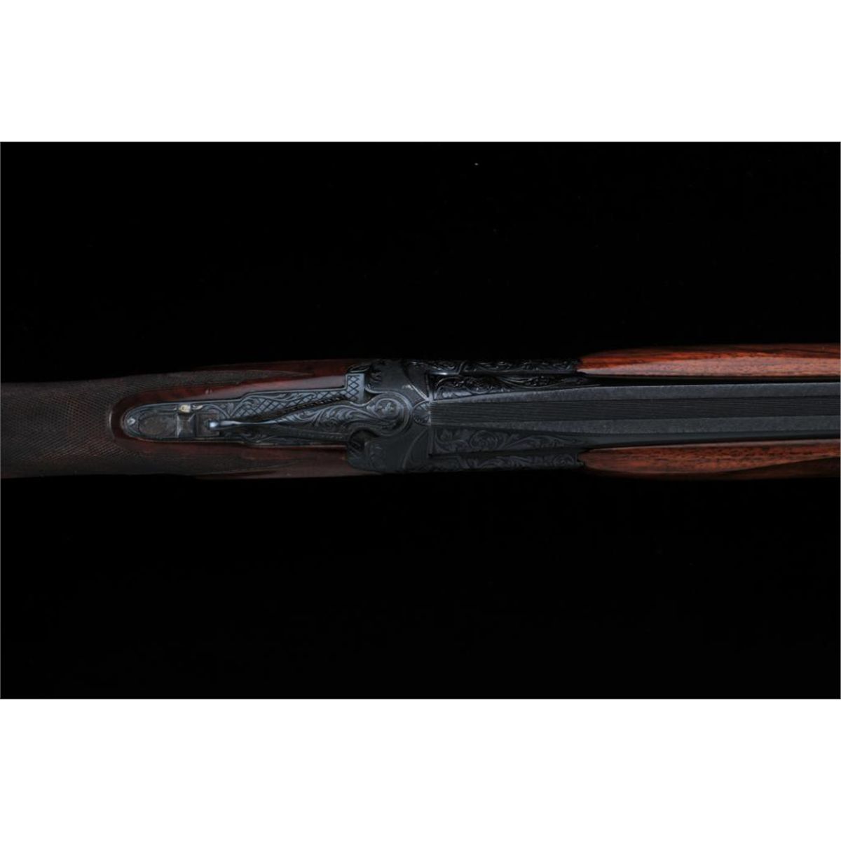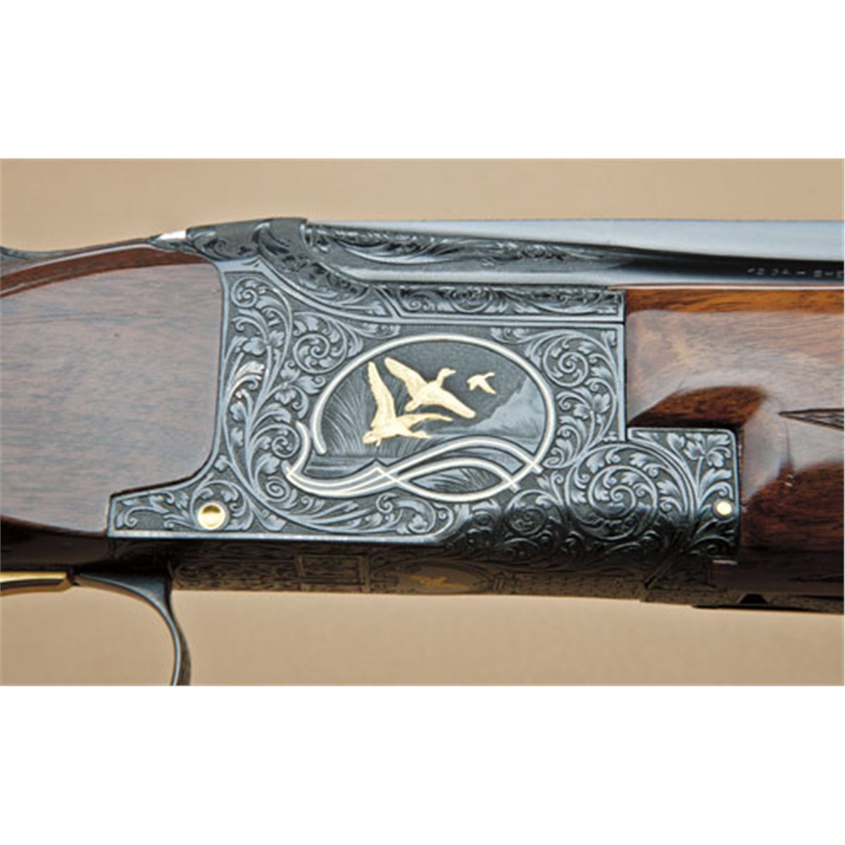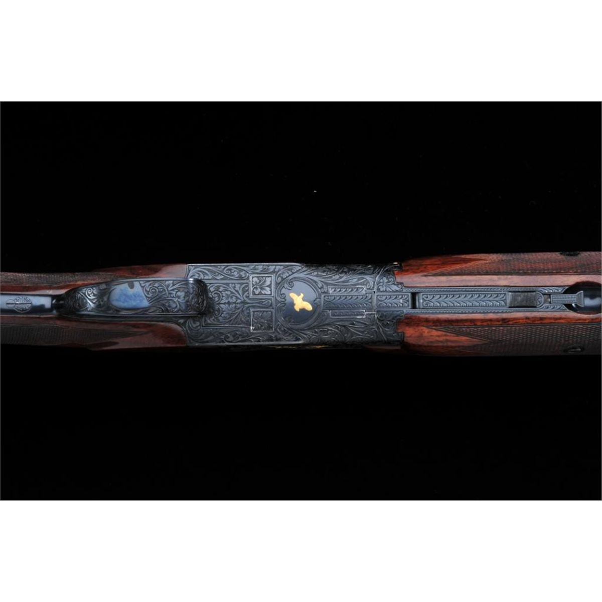 Browning Superposed 12ga over/under shotgun, Midas grade. 32” barrels, broadway style wide rib, choked Full over Modified. The gun shows standard single-trigger, auto ejector, high grade checkered select walnut stock,serial #93541. The gun remains in fine to near excellent condition showing 95-98% original blue, some slight evidence of use and the stock is also fine to near excellent showing just a few bumps in the checkering,some minor scratches, browning hard-rubber recoil pad. Bores near excellent. Gun measures 14-1/8”to the end of the wood 15-1/4 to the end of the hard-rubber pad. With browning carrying case. From the RobertPetersen Estate. Est: $4,000 - $8,000