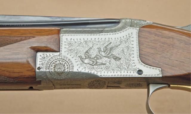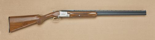 Browning Superposed 28ga Pigeon Grade Belgian-made over/under shotgun 28” barrels, single trigger, auto ejector, ventilated rib, choked Full over Modified. 95-98% original blue, French gray frame, shows just some slight toning. The stocks are fine to near excellent and show round knob and long tang. Serial #0F249. The original browning buttplate shows a small chip. The bores are fine to near excellent and the gun shows just minor use. From the Robert Petersen Collection. Est: $2,500 - $5,000