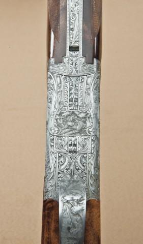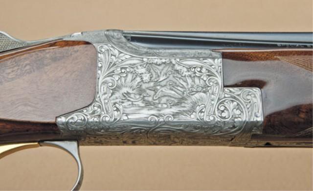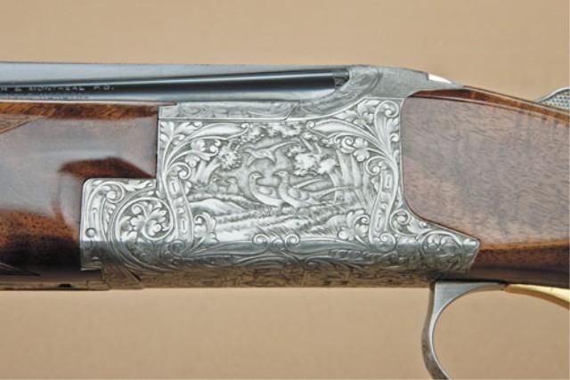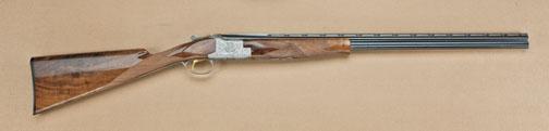 Browning Superposed 410ga over/under shotgun, superlight, 28” barrels, single trigger, auto ejector, ventilated rib, choked “Full” and “Modified”, Diana grade, serial #544J83. The gun shows typical high grade European style engraving for Diana grade and is signed G. Kozlowski”. The gun shows no evidence of firing or use and is like new in box, 99% to mint. Shows correct serial numbered end label, the box shows minor storage and handling. These high grade superlight browning are scarce and desirable, especially in 410ga. From the Robert Petersen estate. Est: $5,000 - $10,000