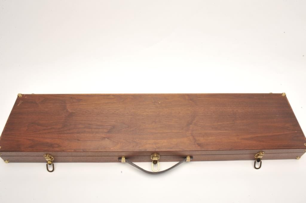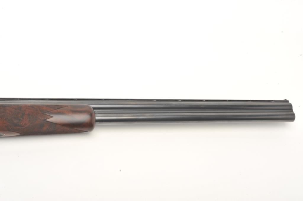 Browning Superposed High Grade Black Duck Model O/U shotgun, 12 gauge, serial #8J4PY00086. This shotgun, along with the two prior lots, comprises three matched examples of the Browning WaterfowlSuperposed Series. According to the consignor, only 13 Waterfowl sets with matching serial numbers were produced. This high grade, Belgian made Browning is as new in the box with 28” barrels featuring a full-length ventilatedrib and ivory bead front sight. The upper barrel is modified choke while the lower is full choke. The shotgun barrels retain nearly all of their blued finish with only the lightest ofhandling marks. The coinfinished, relief engraved receiver is finished in the white with gold inlayed game scenes on both sides depicting Black Ducks. The underside of the action is marked 086 of 500 in gold,indicating the limitedproduction of the series. The shotgun comes in the original box with all associated paperwork and manuals. The finely checkered wood stocks are in excellent condition with beautiful, Note+++3rd in a 3 part series, 1st is lot 825a, 2nd is lot 825b.