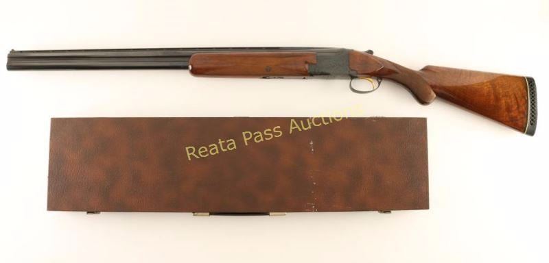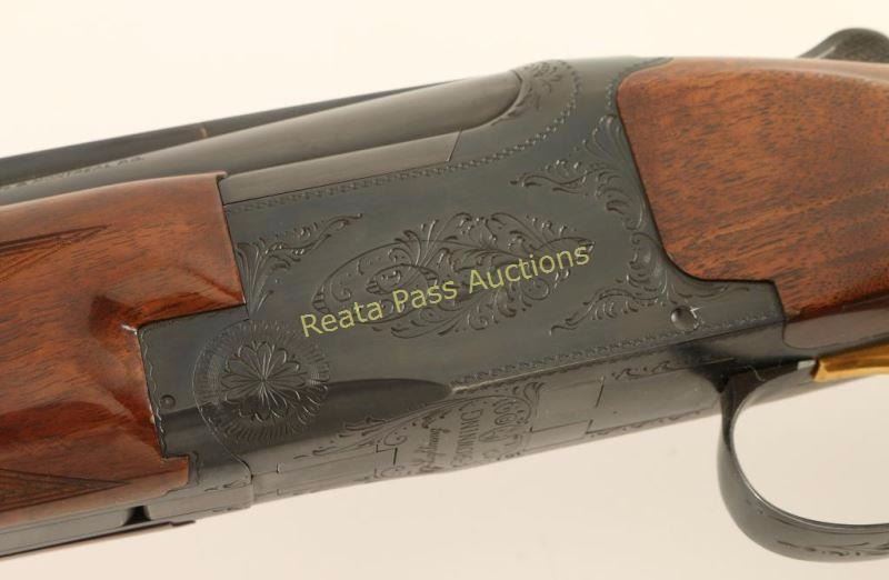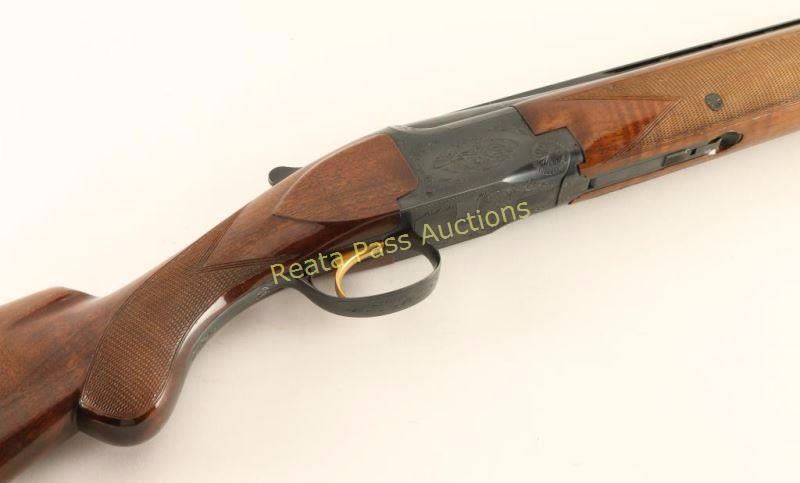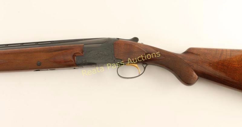 SN: 17192S3 'Grade 1' Engraved Belgium made under/over double barrel shotgun chambered for 2 3/4" 12 gauge shells, circa 1963. Features a blued finish, 28" barrels with a ventilation rib & skeet/skeet chokes, automatic ejectors, white bead sights, floral scroll engraved receiver, smooth single gold trigger, sliding tang safety/barrel selector and finely checkered walnut forend and pistol grip shoulder stock with round knob and Pachmayr recoil pad. Includes a set of .410 gauge tubes made by Claude Purbaugh - master gunsmith, champion shooter and the man responsible for the shotgun tube concept. Along with the tubes are a case, small parts, mallet, some articles about the man and installation instruction from Purbaugh. Shotgun exhibits approximately 96% of it's original finish showing light scattered edge wear, some slide marks on the barrel from take-down and slide wear underneath the safety/barrel selector. Action is smooth, bores are pristine and wood stocks are very good with some light scratches on the right side of the shoulder stock. Condition is excellent. ***C&R Firearm*** ***Modern Firearm***