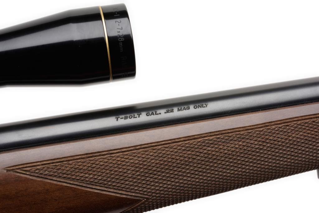 Browning T Bolt in .22 mag with Leupold scope in factory taps, SN: 014252M53. In fine to excellent condition. 98%-99%. Est.:$800-$1600