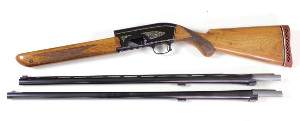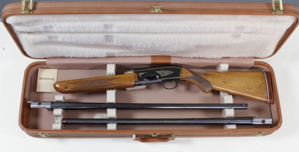 Browning Twelvette 12 ga. SN A25051 semi auto shotgun with 2 barrels including 27 1/2" modified and 26 1/2" vent rib cylinder. A no number prefix gun C. 1955-1957 showing good used condition and added rubber buttpad. Includes Browning 2 barrel hard case.semi auto shotgun with 2 barrels including 27 1/2" modified and 26 1/2" vent rib cylinder. A no number prefix gun C. 1955-1957 showing good used condition and added rubber buttpad. Includes Browning 2 barrel hard case. From old St. Louiscollection. FFL/Modern. Est. 650-1200