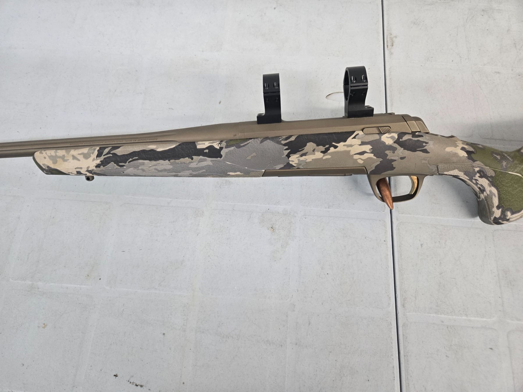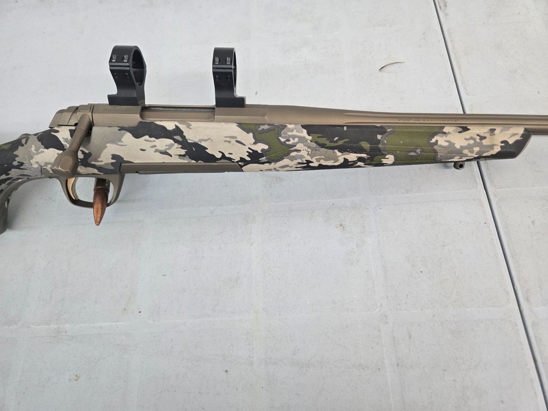 Bolt action. Retains +95% of its original bronze finish. Action fuctions as new. Boreon fluted barrel is excellent. Stocks are in immaculate condition.