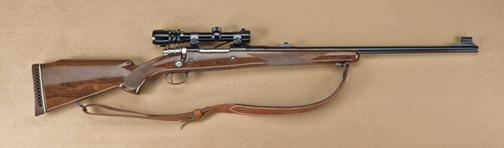 Browning bolt-action standard-grade rifle, Belgian made, later production, with standard non-claw extractor, .300 win mag caliber, Bushnell scope on Bushnell 1.5x4.5 power scope. Weaver mounts, QD detachable sling swivels with leather sling, serial #60251L70. The rifle remains in very good to near fine used condition, 95-98%, some discoloration on the bolt from storage, some normal use and carry, fine bore, browning hard-rubber recoil pad, one large scratch on left side of stock. 95-97%. Est: $500 - $900