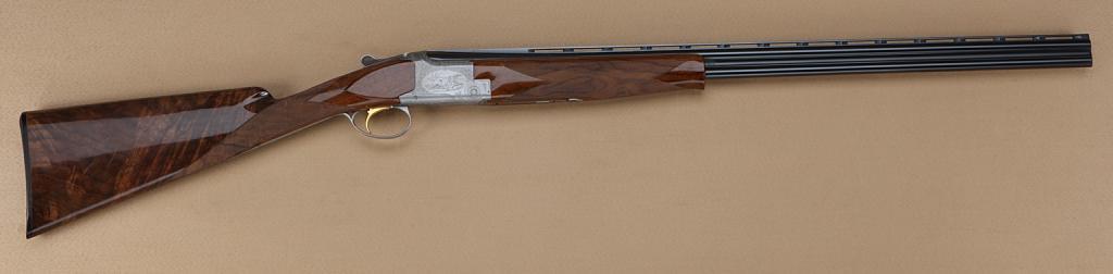 Browning superposed 410ga Superlight, Pointer grade, 28” barrels choked “Full” over “Modified”. Serial #567J83. The gun is in fine to excellent condition, 99% plus, showing minimal use or possible test-firing.Full length, box serial numbered to match. Box shows very slight storage marks. From the Robert Petersen collection. Est: $3,500 - $7,000