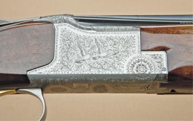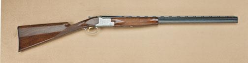 Browning superposed 410ga over/under shotgun, 28” barrels, ventilated rib, single trigger, auto ejector, English style straight stock, pointer grade, choked Full and Modified. Belgian made. Signed at rear of action, “J.P. Bailly” on rear of action and “R. F. Culef”. The gun remains in fine to excellent original condition showing minimal firing and slight use, near new, 99% plus in original box missing its end label. Box shows some slight tatters and storage. From the Robert Petersen estate. Est: $3,500 - $7,000