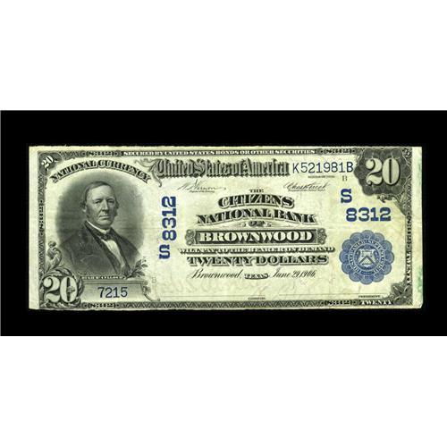 <B>Brownwood, TX</B></I> - $20 1902 Date Back Fr. 644 <B>The Citizens NB</B></I> Ch. # (S)8312<BR>A solid <B>Very Fine</B></I> from Brown County.<BR><BR><b>Shipping:</b> Coin/Currency (<a target="_blank" href="http://www.heritageauctions.com/common/shipping.php">view shipping information</a>)