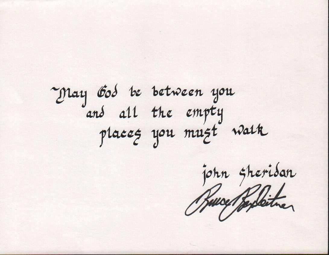 John Sheridan quote printed in calligraphy and signed by Bruce Boxleitner. All items come with a COA and guarantee for the life of the piece.