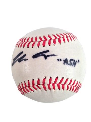 Bruce Campbell signed baseball in plastic display case. In 1979 with his Detroit friends, Sam Raimi and Rob Tapert, Bruce Campbell raised $350,000 for a low-budget film, The Evil Dead (1981), in which he starred and co-executive produced. Completed piecemeal over four years, the film first gained notoriety in England where it became the best-selling video of 1983, beating out The Shining (1980). After its appearance at Cannes, where Stephen King dubbed it "the most ferociously original horror film of the year", New Line Cinema stepped forward to release "Evil Dead" in the U.S. (3"x3")